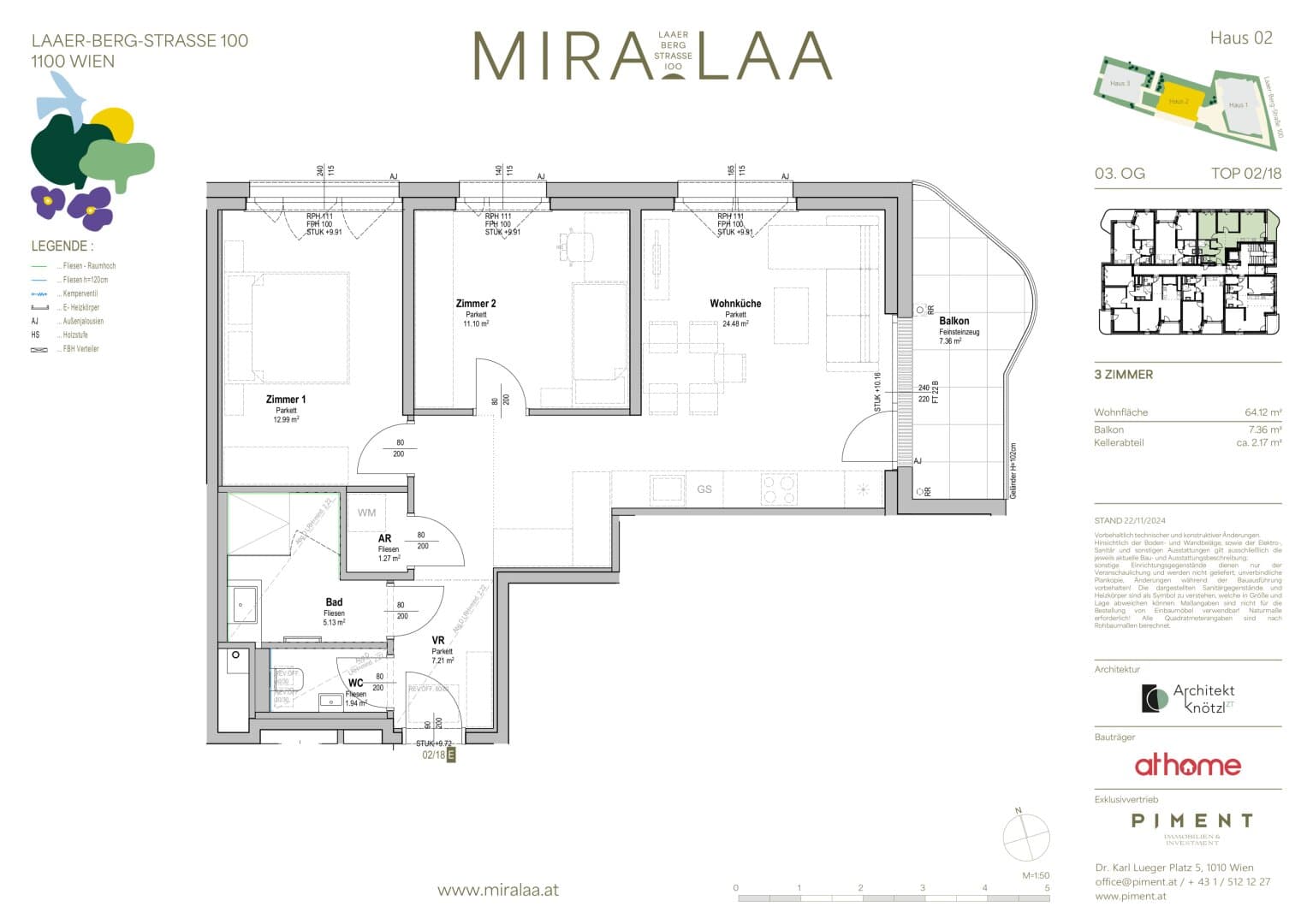 The park ensemble at Laaer Berg "MIRA LAA" with its 54 condominiums unfolds in the heart of the new district Viola Park as a sophisticated refuge of variety: For all city lovers who also want to be quickly in nature on foot and love views.
