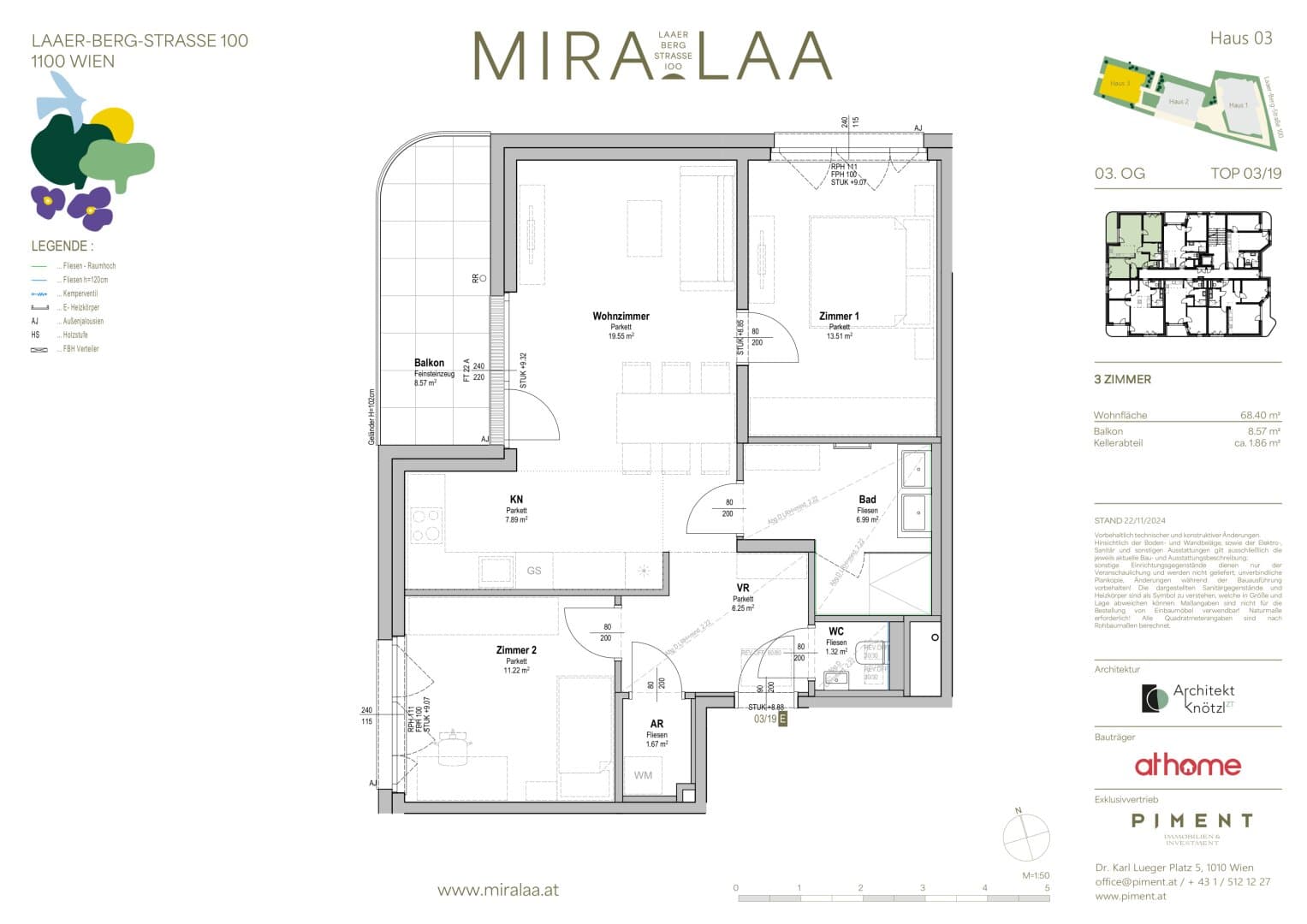 MIRA LAA is very well connected to public transport. The underground station Altes Landgut (U1) is only a 10 minute walk away, or take bus 68A to Reumannplatz or 68B to Oberlaa.