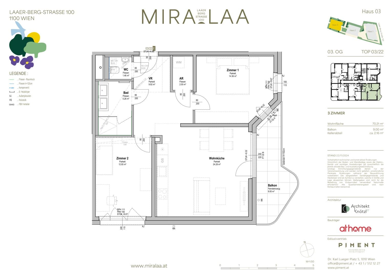 MIRA LAA is very well connected to public transport. The underground station Altes Landgut (U1) is only a 10 minute walk away, or take bus 68A to Reumannplatz or 68B to Oberlaa.
