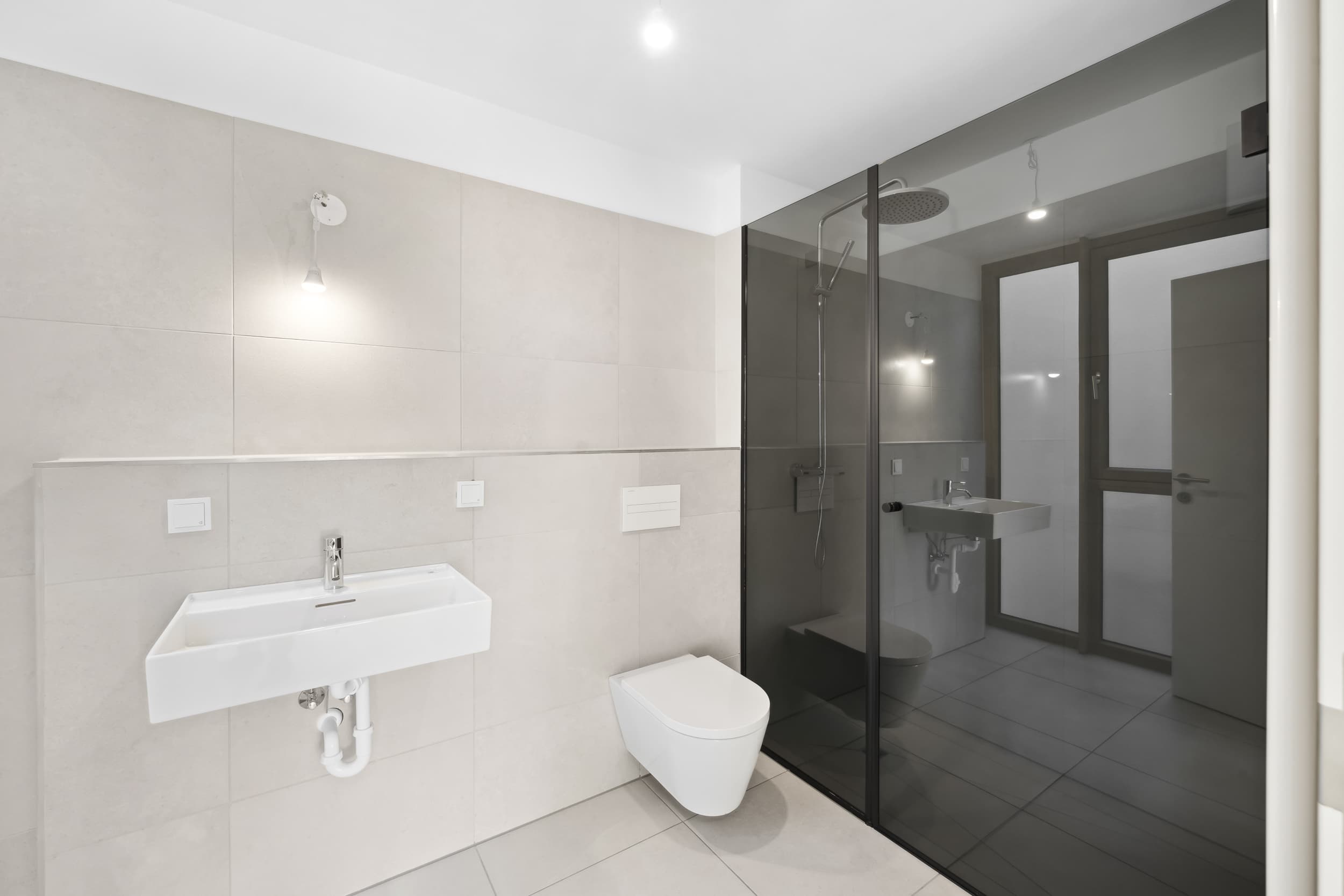 // Daylight bathrooms with ground-level walk-in showers