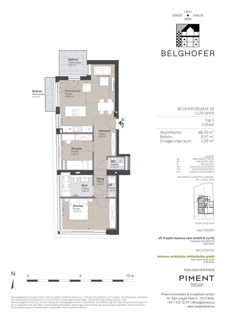 Room layout TOP 5 // Anteroom // Storage room with washing machine connection // Bathroom with bathtub & toilet // Guest toilet // Kitchen/living room incl. fitted kitchen & balcony access // Bedroom // Room