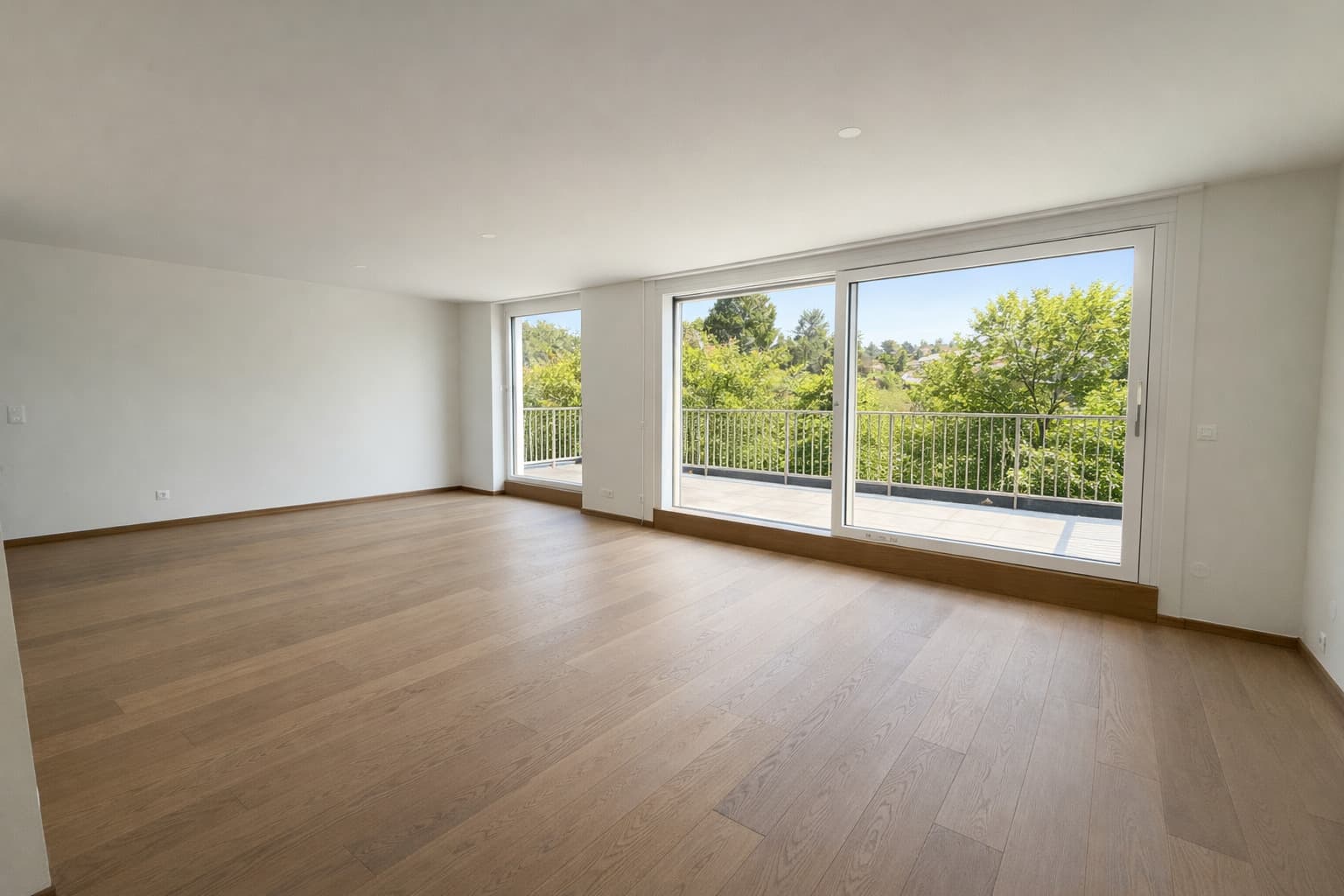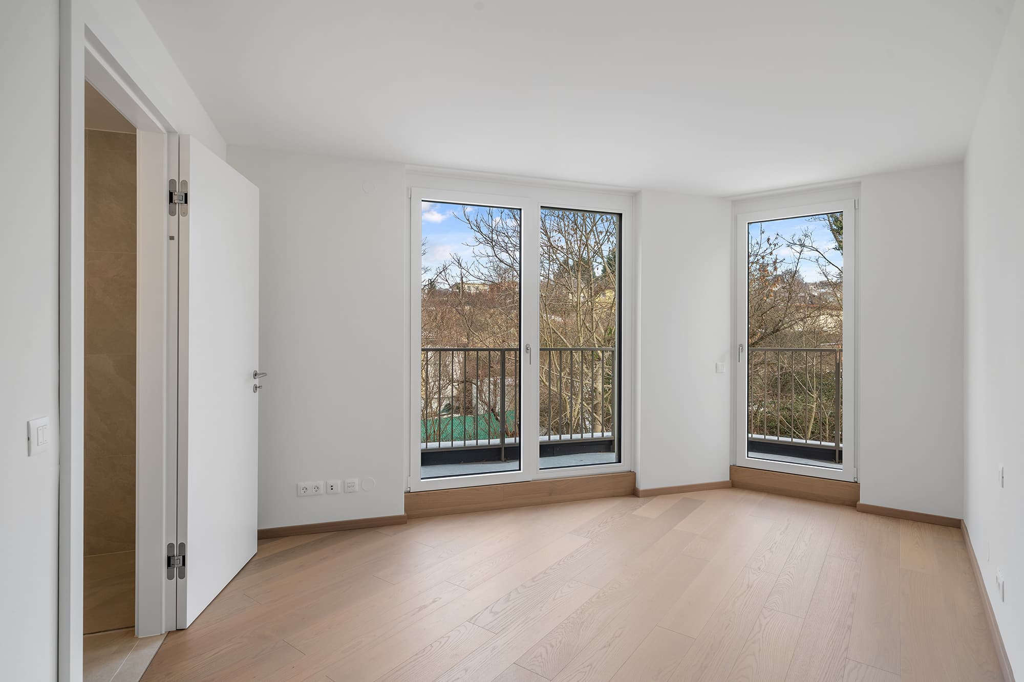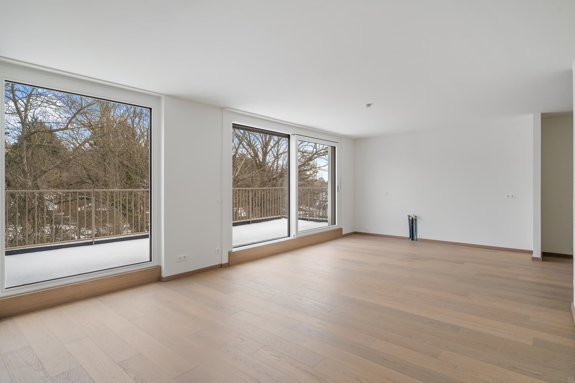 Die bodentiefen Fenster und Panoramafenster bilden einen fließenden Übergang zur malerischen Umgebung und erweitern den Raum nach Aussen. Im Inneren überzeugen die modernen Wohnräume durch das offene Raumkonzept, bei dem Wohnzimmer, Esszimmer und Küche nahtlos miteinander verbunden sind. Und auch hier reflektieren die hellen und pastellfarbenen Farbtöne der Wände, Decken und Böden das Licht.