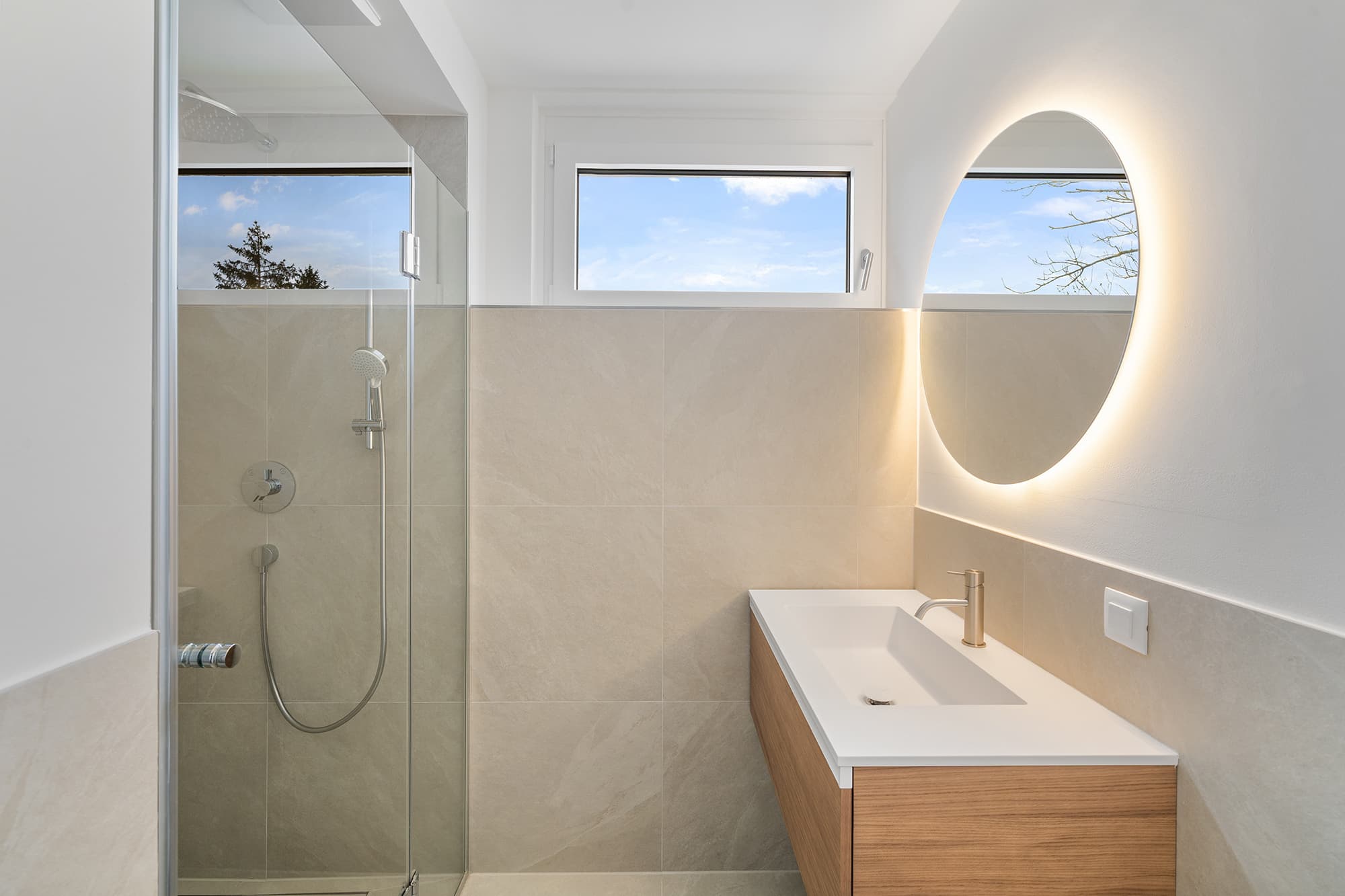 Der hohe Anspruch an Ästhetik und die Liebe zum gestalterischen Detail schaffen spiegeln sich in einer durchdachten Raumabfolge wider, die Ruhe und Ordnung vermittelt. Die offenen Grundrisse schaffen ein Gefühl von Weite und Freiheit, während hochwertige Materialien und zeitgemäße Technik den Komfort und die Funktionalität verbessern. Zeitlose Werte für ein zeitgemäßes Zuhause.