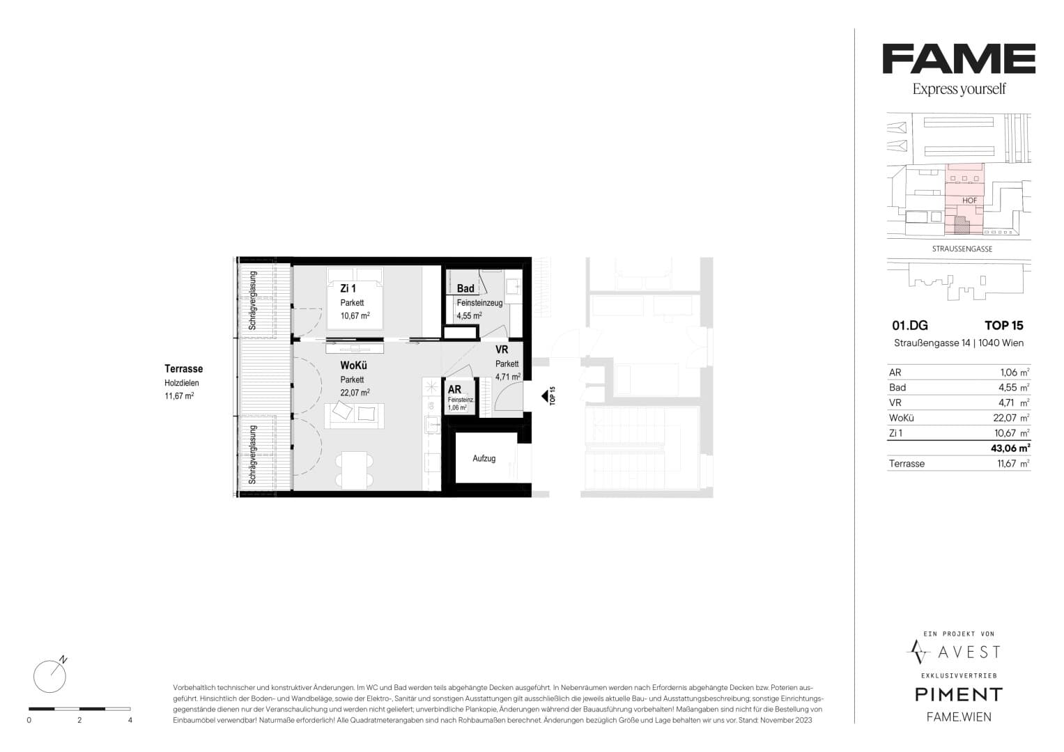 FAME thront im avantgardistische Herzen von Margareten, Vielfalt und Lebendigkeit sind an jeder Ecke spürbar, man lebt umgeben von hochklassigen Restaurants und trendigen Bars, Art-House-Kinos und zeitgenössischen Galerien. Der Naschmarkt lädt zum Bummeln und Verweilen ein, die Karlskirche und das Schlossquadrat bieten ikonische Orte der Begegnung. Die pulsierende Mariahilfer Straße, ist ebenfalls rasch erreicht. Mit der hervorragenden Verkehrsanbindung gelangt man zügig in andere Bezirke, wodurch Margareten zum perfekten Startpunkt für Entdeckungstouren durch Wien avanciert.