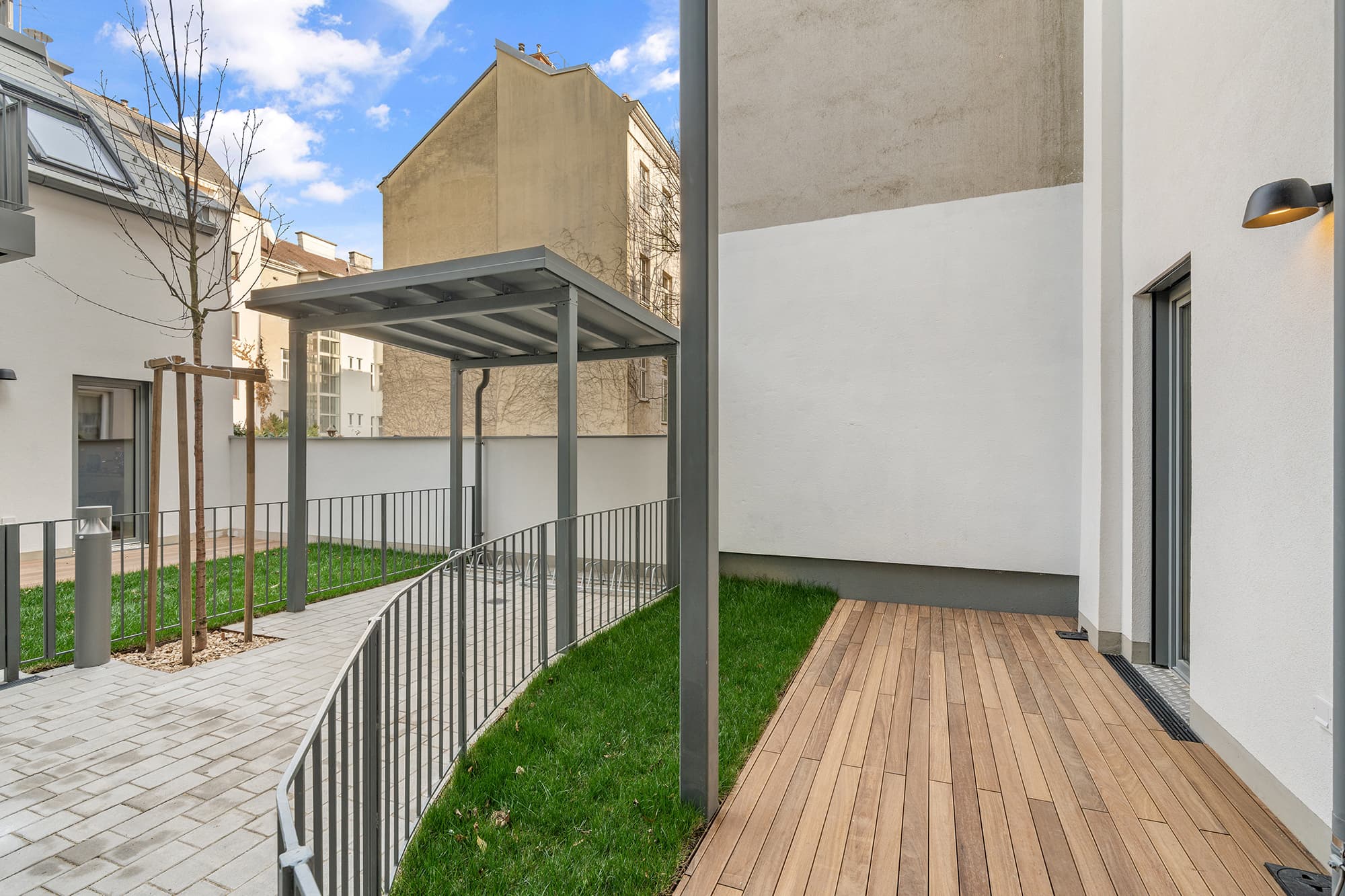Im Innenhof, wo einst Wasser zu Kracherl verfeinert wurde, entsteht ein einzigartiges zweigeschossiges Townhouse. Die Altbauwohnungen wurden stilsicher mit viel Liebe zum Detail generalsaniert, deren Wohnraum mit Balkonen erweitert. Die Ausrichtung zum ruhigen Innenhof verspricht Entspannung – ein wahrer Ruhepol inmitten der Stadt. Oben auf, überzeugen die exklusiven DG-Wohnungen mit ihren durchdachten Grundrisse und großzügigen Terrassen mit Wien-Weitblick.