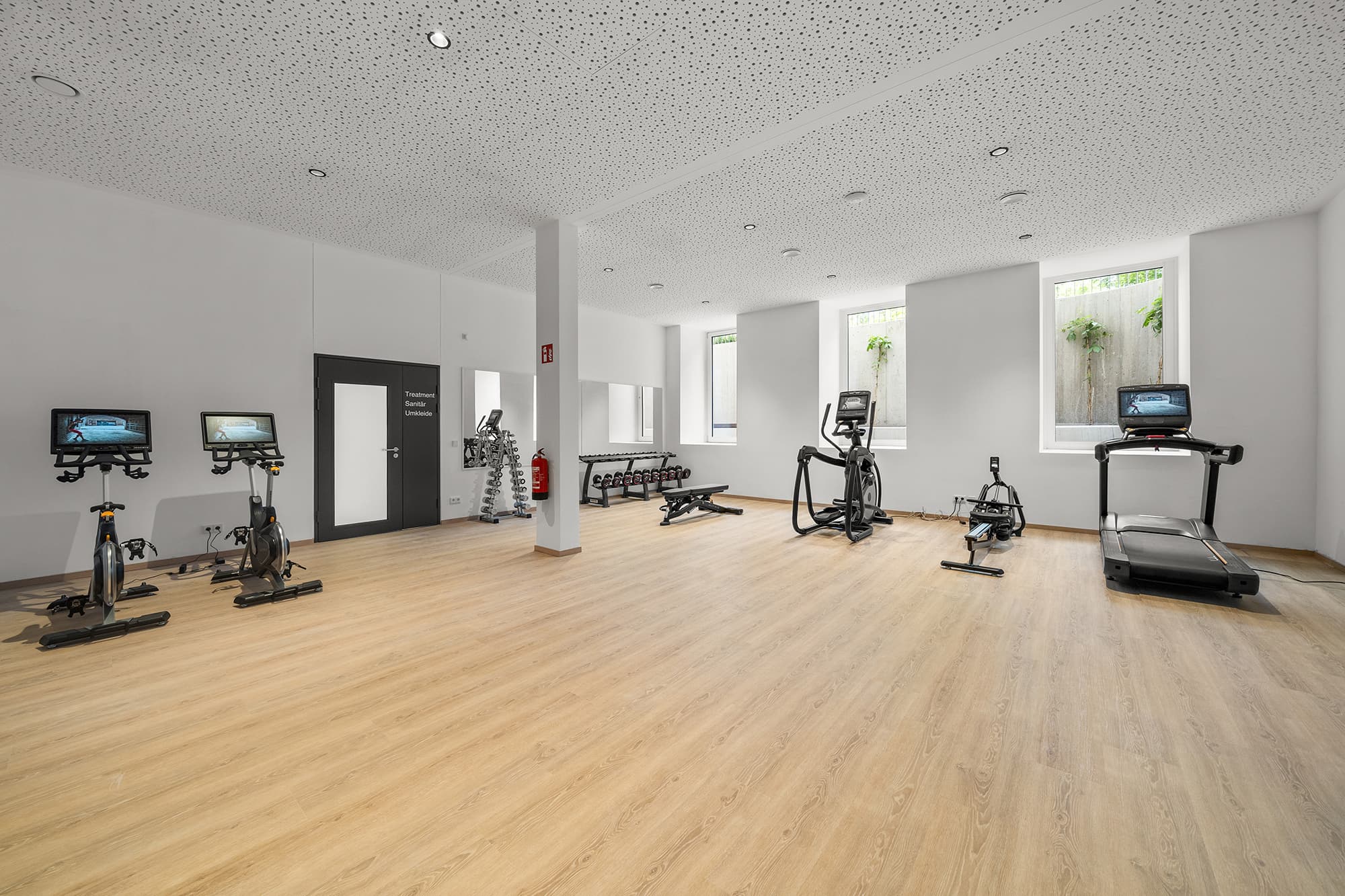 Für zusätzliches Wohlbefinden sorgt ein ausgestatteter Fitnessbereich, ein Wellnessbereich mit Sauna, Dampfbad und Infrarotkabine, ein privat buchbarer Yoga- und Massageraum sowie ein Kneippbecken.