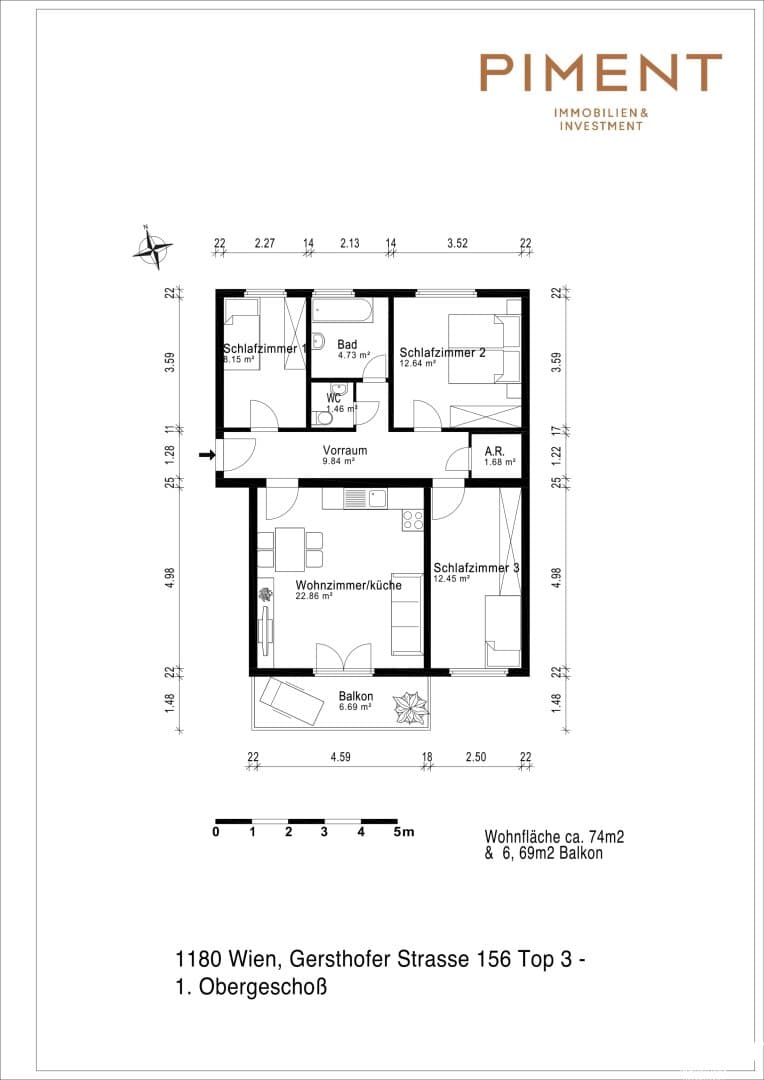 Diese ideal aufgeteilte 4-Zimmer-Wohnung mit ca. 74 m² Wohnfläche überzeugt durch ihre kompakte Raumaufteilung, zentral begehbaren Räume sowie eine hochwertige Generalsanierung im Jahr 2020. Sie bietet ideale Voraussetzungen sowohl für Familien als auch für Paare oder WGs, die Wert auf Komfort und Funktionalität legen.