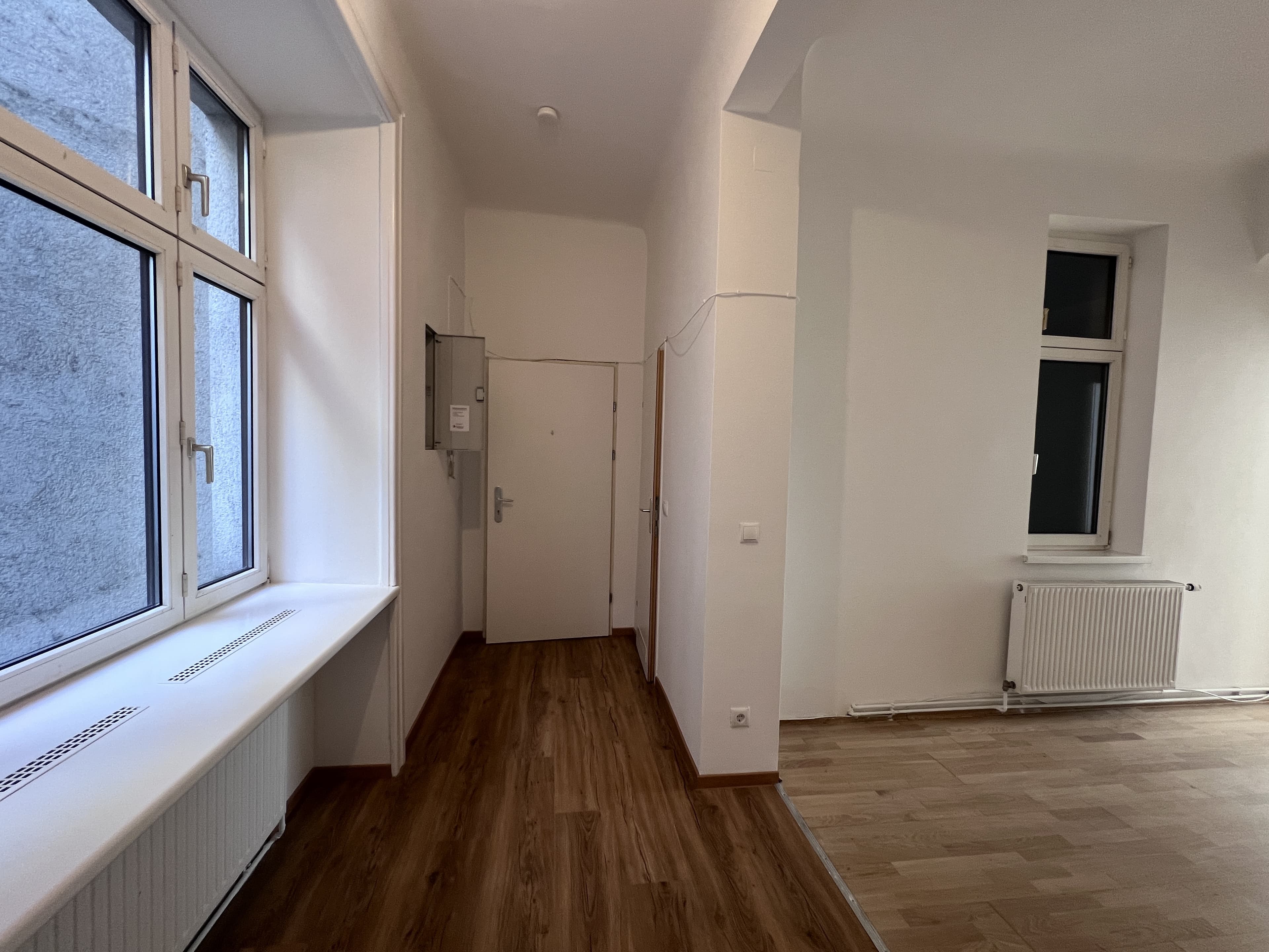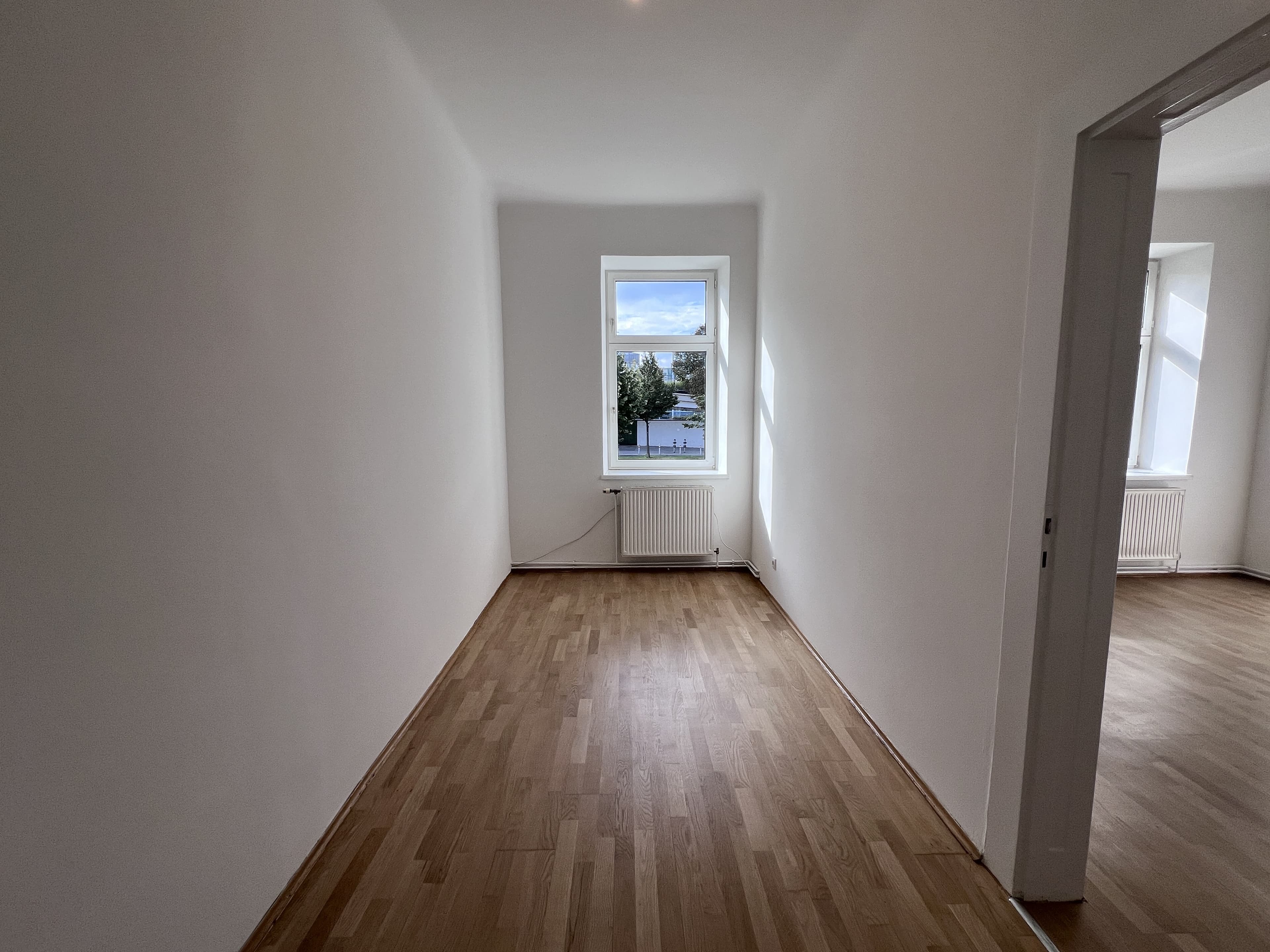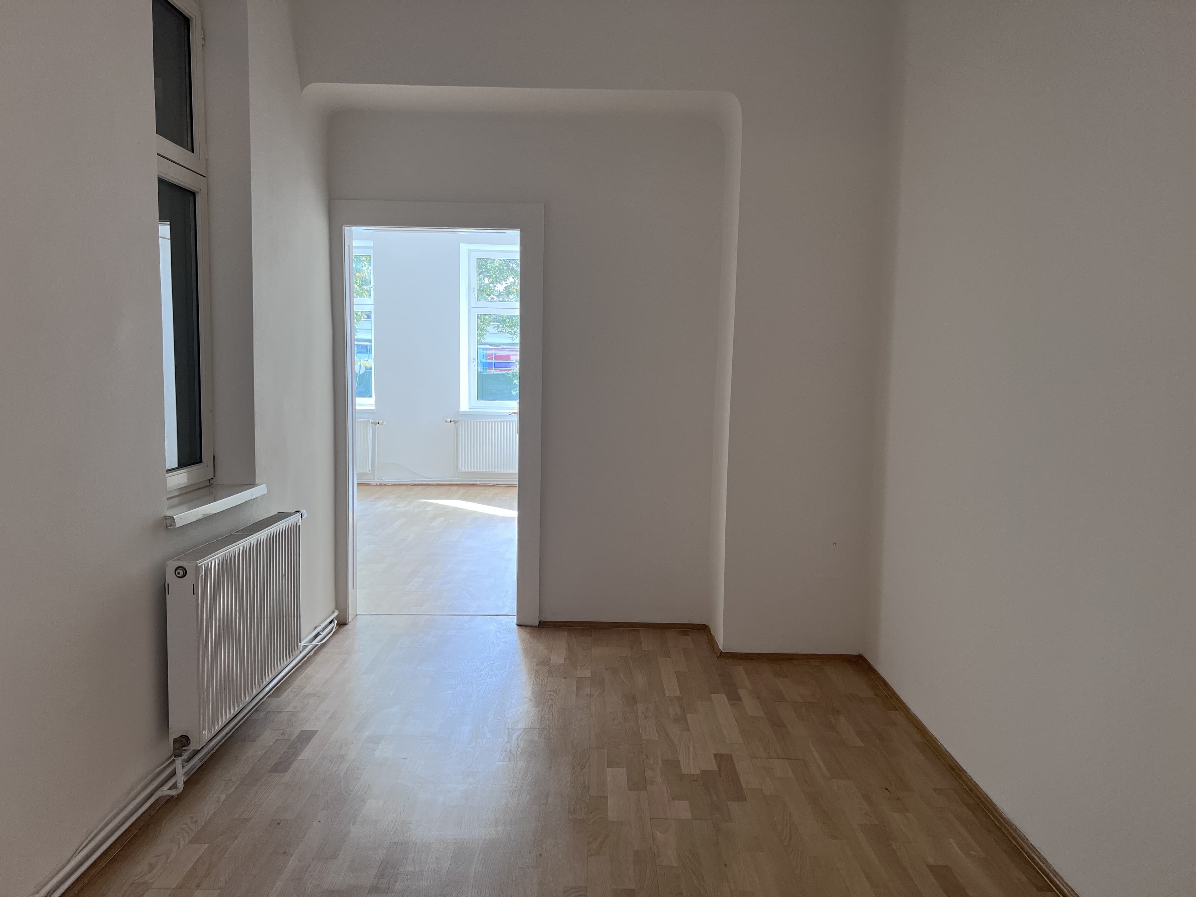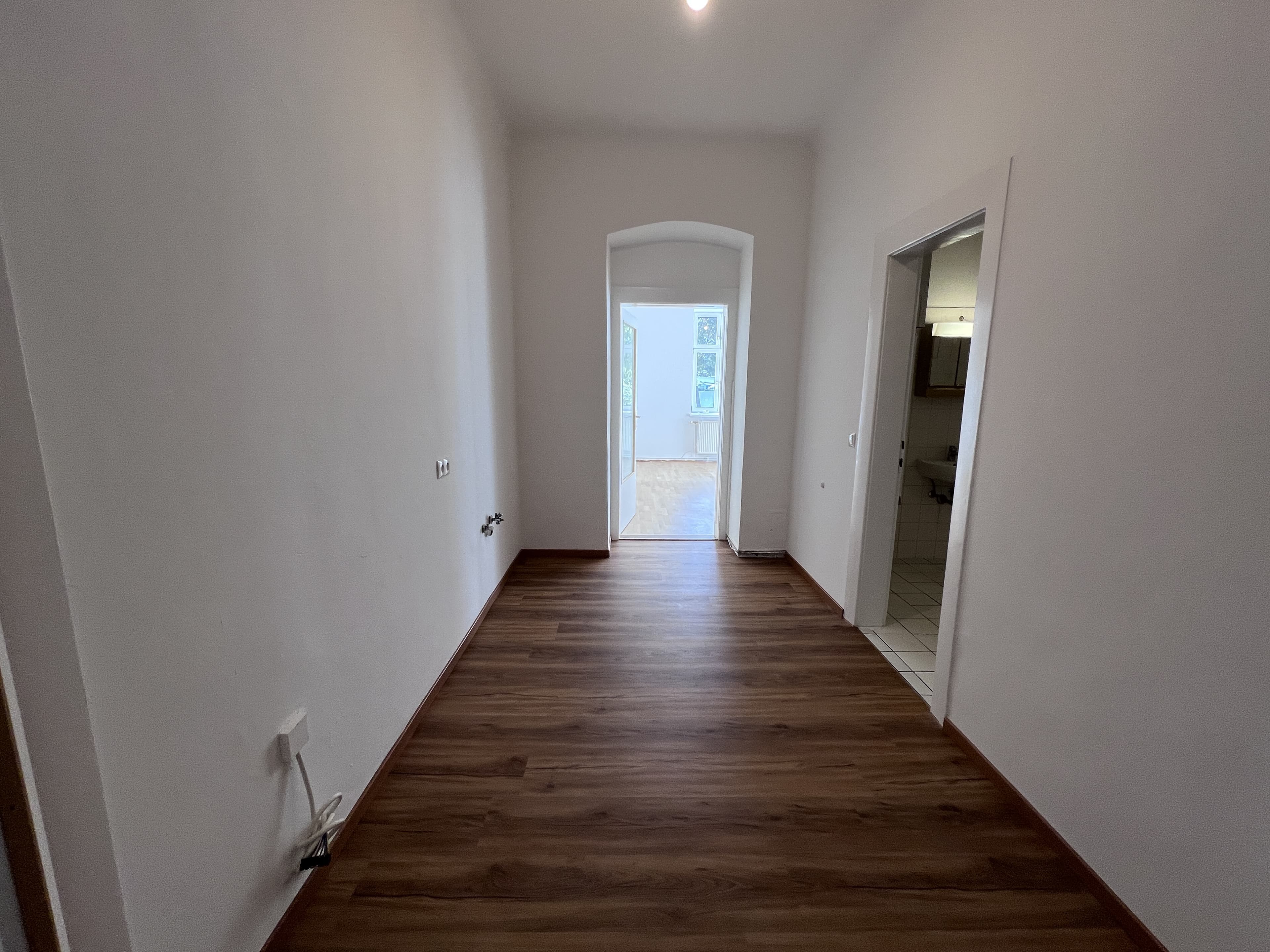 Raumaufteilung // Eingengsbereich mit großem Vorzimmer // Wohnzimmer // separate Toilette // Gang-Küche - keine Küche eingebaut - Küchenanschlüsse sind vorbereitet - für Herd und Abwasch können bei der ersten Miete € 400 einbehalten werden // 2 Schlafzimmer (davon 1 Durchgangszimmer) // 1 sehr kleines Zimmer // Badezimmer
