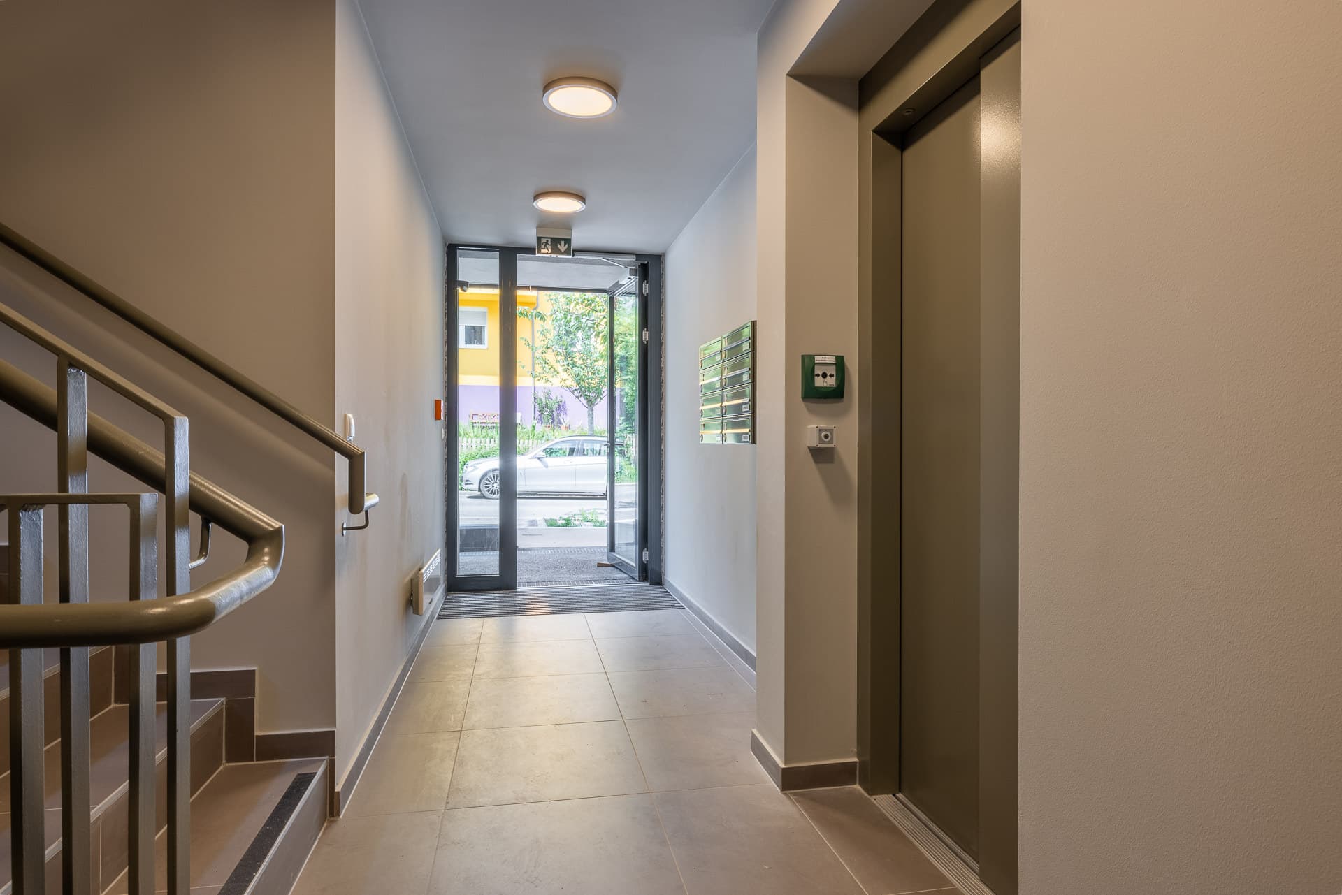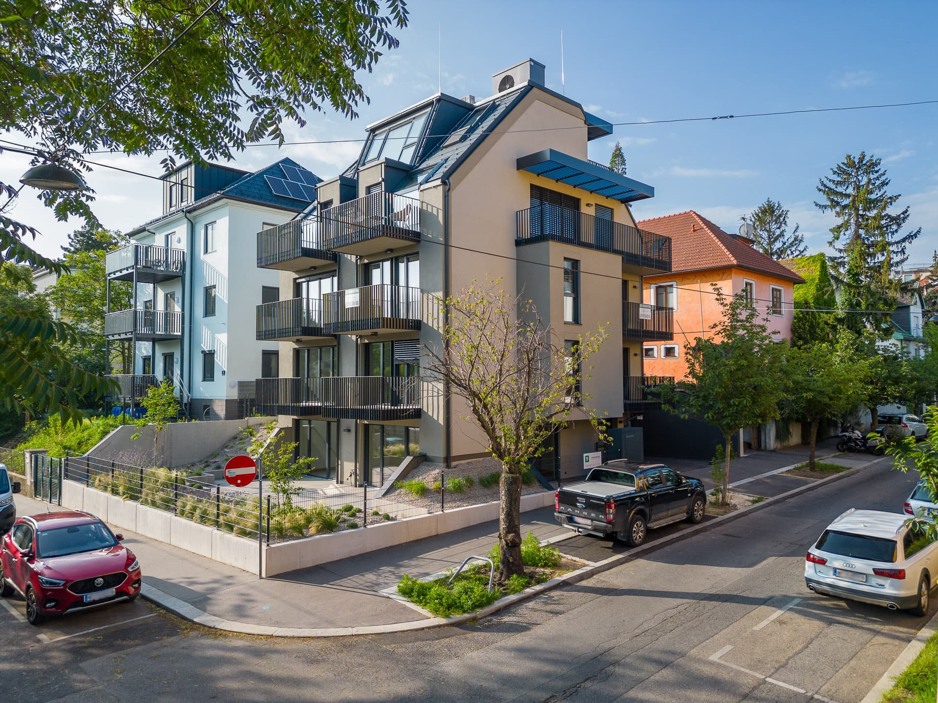 Zur Vermietung gelangt ab 01.11.2025 eine moderne 42 m2 Wohnung mit Balkon in Mitten des beliebten 19. Bezirkes. Diese gut aufgeteilte 2-Zimmer-Wohnung befindet sich im 2. OG eines Neubaus mit insgesamt 8 Wohneinheiten. Die Wohnung verfügt über einen gut durchdachten Grundriss und wurde mit qualitativ hochwertiger Ausstattung versehen. Raumaufteilung // Vorraum // Wohnküche mit Balkon // Badezimmer mit Dusche, Waschbecken und Toilette // Schlafzimmer Ausstattung // voll ausgestattete Küche inkl. Einbaugeräte (Kühlschrank, Spüle, Geschirrspüler, Ceran-Kochfeld, Backrohr) // hochwertiger Parkettboden // Holz-Alu-Fenster mit 3-fach Isolierverglasung // Außenjalousie // Klimaanlage // geschmackvolle Verfliesung aus hochwertigem Feinsteinzeug sowie Design Armaturen in den Nassräumen // elektrischer Handtuchwärmer im Badezimmer // Waschmaschinen Anschluss in der Küche // Wohnungseingangstüre als Sicherheitstüre (Widerstandsklasse II) // Telekabelanschluss Heizung, Kühlung, Warm- und Kaltwasser Die Warmwasseraufbereitung und Heizung erfolgt über eine Luftwärmepumpe, sowie Geothermie. Tiefgarage Das Haus verfügt über eine Tiefgarage. Ein Kfz-Stellplatz kann nach Verfügbarkeit separat angemietet werden. Allgemeine Bereiche Das Haus verfügt über einen Personenlift sowie einen Fahrrad-Abstell-Platz. Jede Wohnung verfügt über ein großzügiges Kellerabteil.