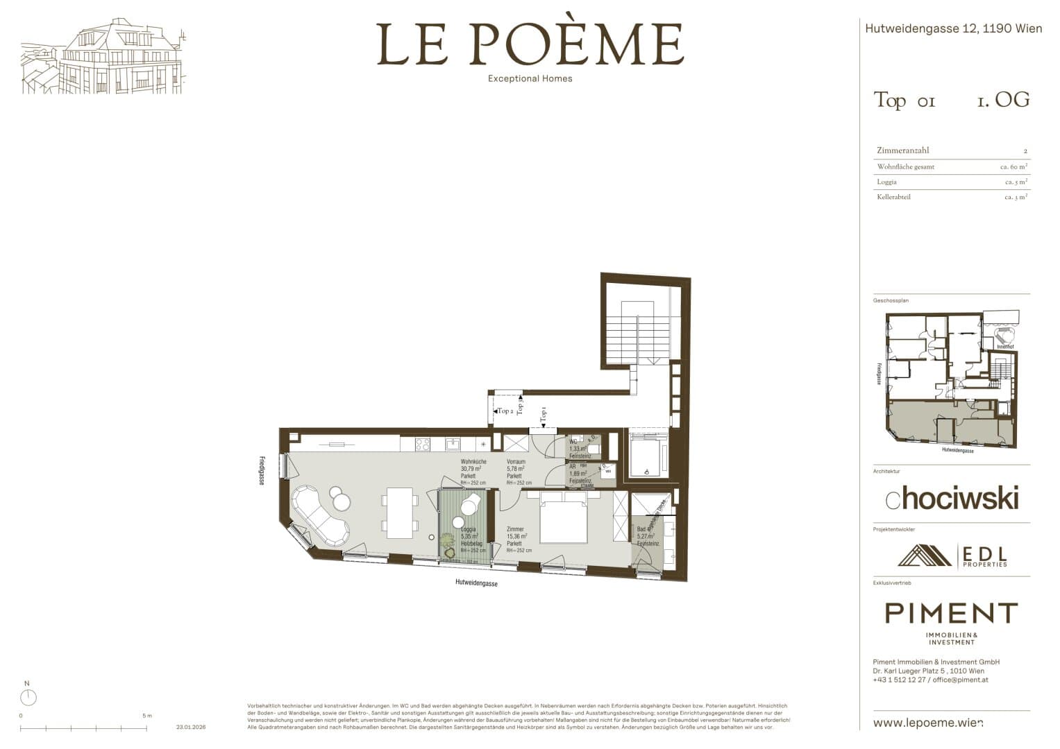 LE POÈME, das sechsgeschossige Eckhaus an der Hutweidengasse und Friedlgasse, vereint die Vorzüge urbaner Lebensqualität mit der Ruhe einer beliebten Wohngegend. Die Klinkerfassade – eine für Wien seltene Bauweise – erinnert an die Architektur nordischer Metropolen und verleiht dem Gebäude eine kraftvolle Ausstrahlung. Französische Fenster sorgen für einen offenen Charakter und schaffen helle, lichtdurchflutete Räume.
