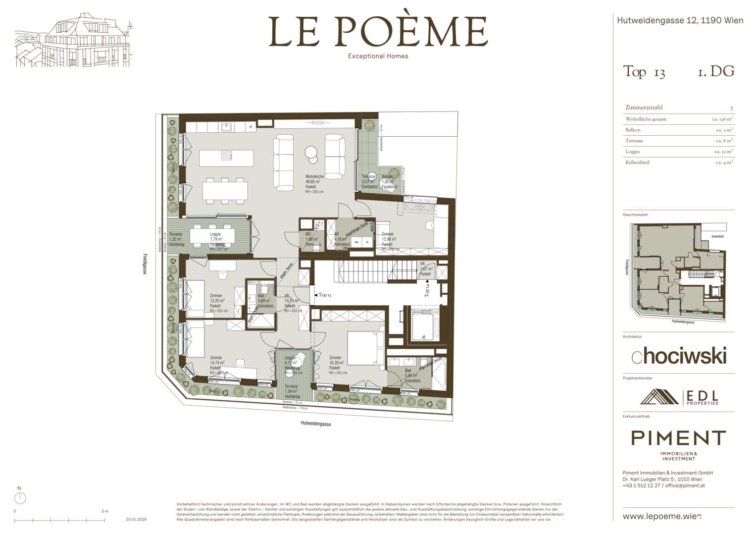 LE POÈME, das sechsgeschossige Eckhaus an der Hutweidengasse und Friedlgasse, vereint die Vorzüge urbaner Lebensqualität mit der Ruhe einer beliebten Wohngegend. Die Klinkerfassade – eine für Wien seltene Bauweise – erinnert an die Architektur nordischer Metropolen und verleiht dem Gebäude eine kraftvolle Ausstrahlung. Französische Fenster sorgen für einen offenen Charakter und schaffen helle, lichtdurchflutete Räume.