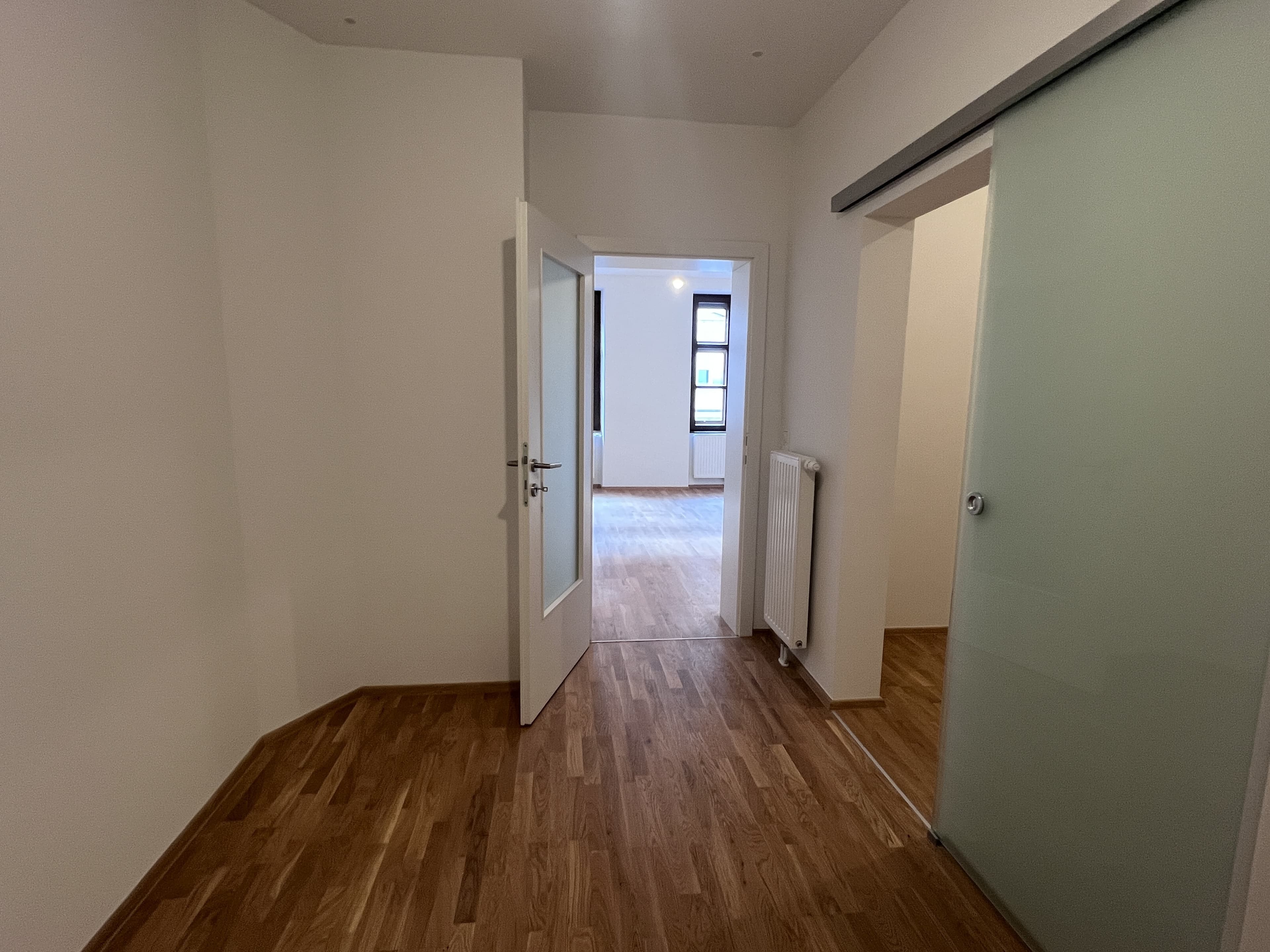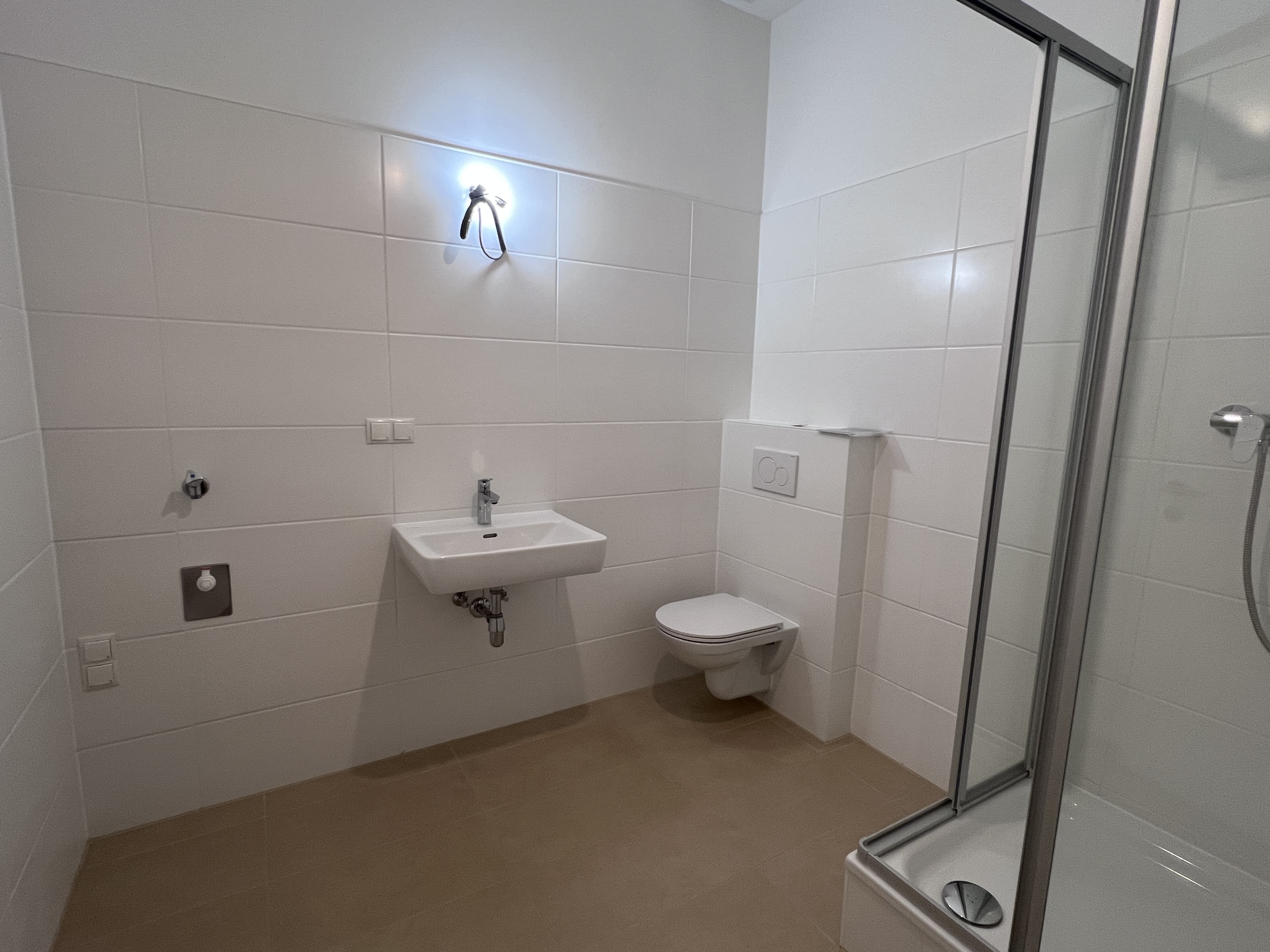 Raumaufteilung // Vorzimmer // Wohnküche - keine Küche eingebaut - Küchenanschlüsse sind vorbereitet - für Herd und Abwasch können bei der ersten Miete € 400 einbehalten // Schlafzimmer // Badezimmer mit WC