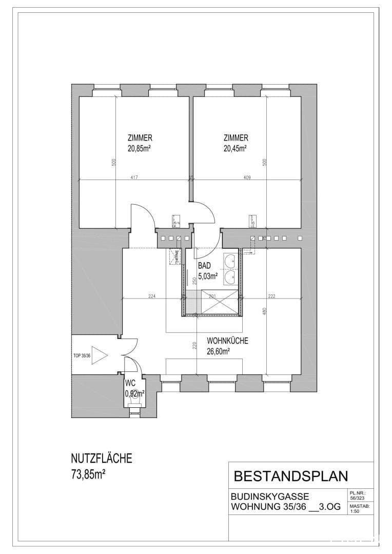 Raumaufteilung // Vorzimmer // Wohnküche // Wohnzimmer // Schlafzimmer // Badezimmer mit Dusche // separates WC