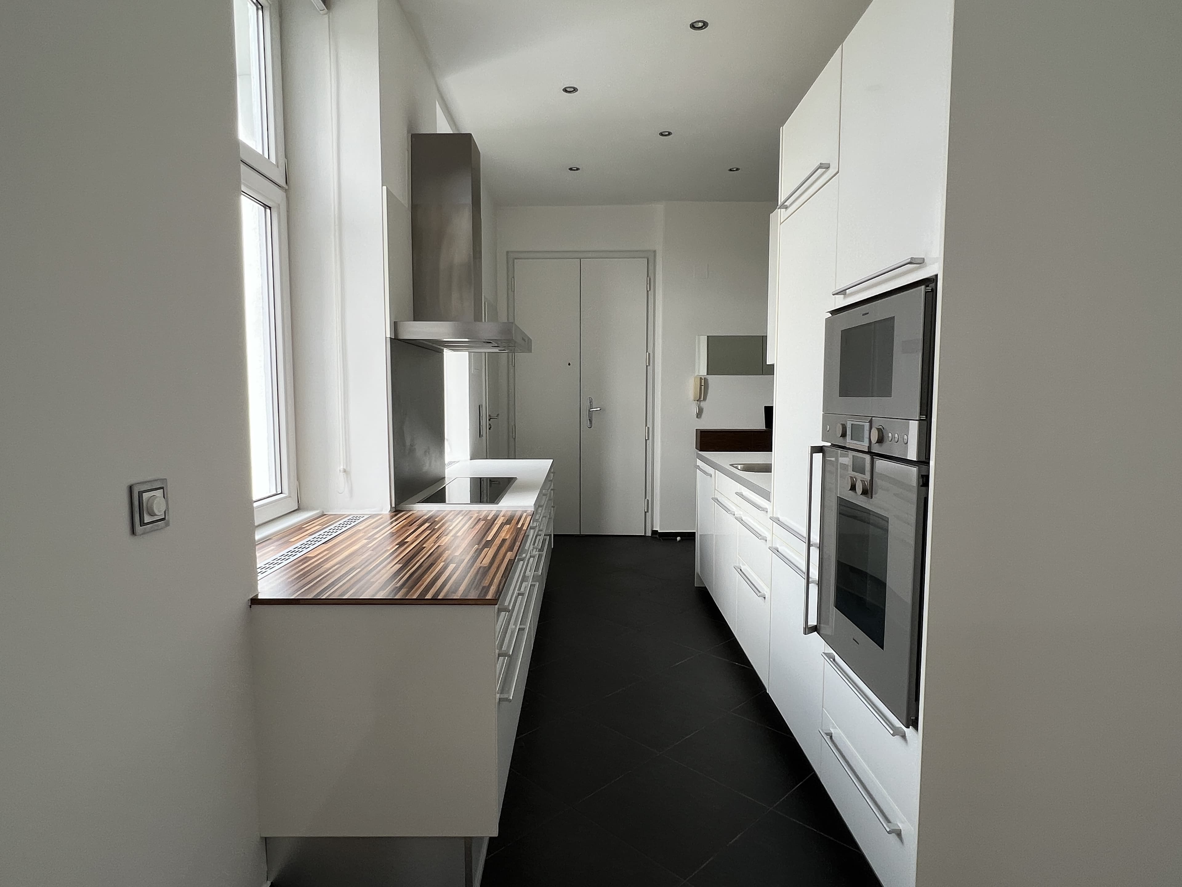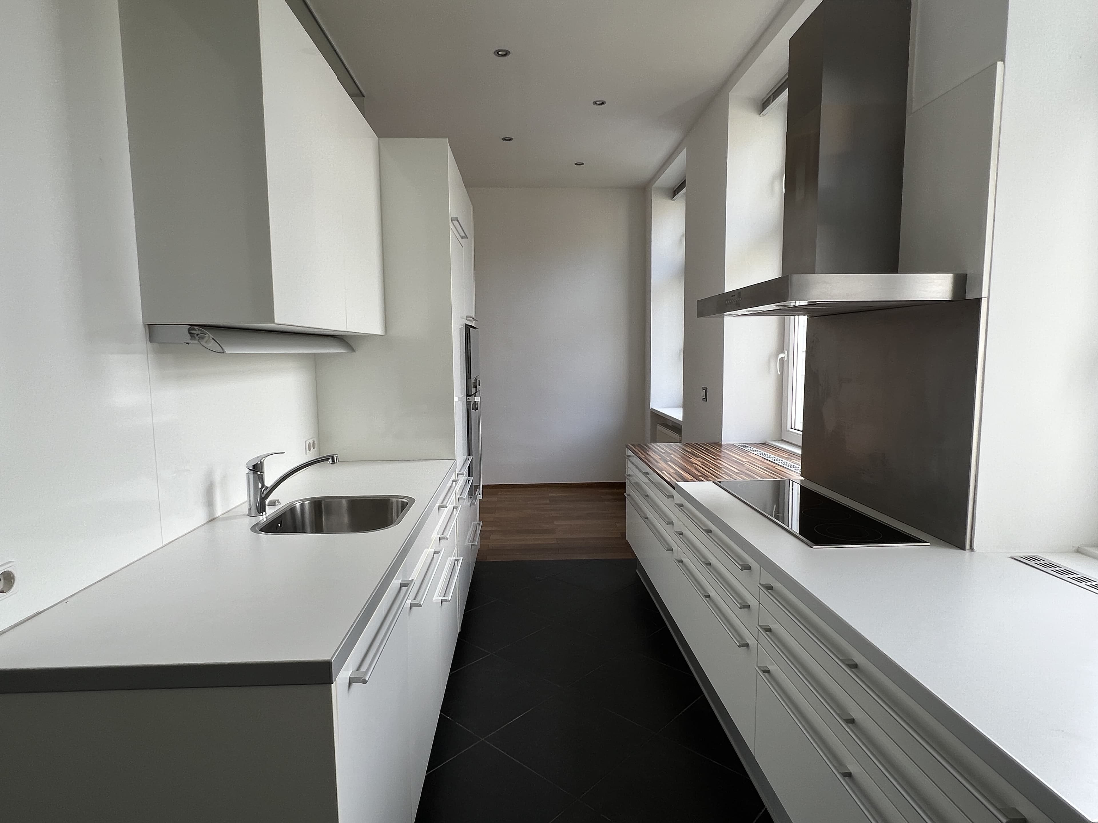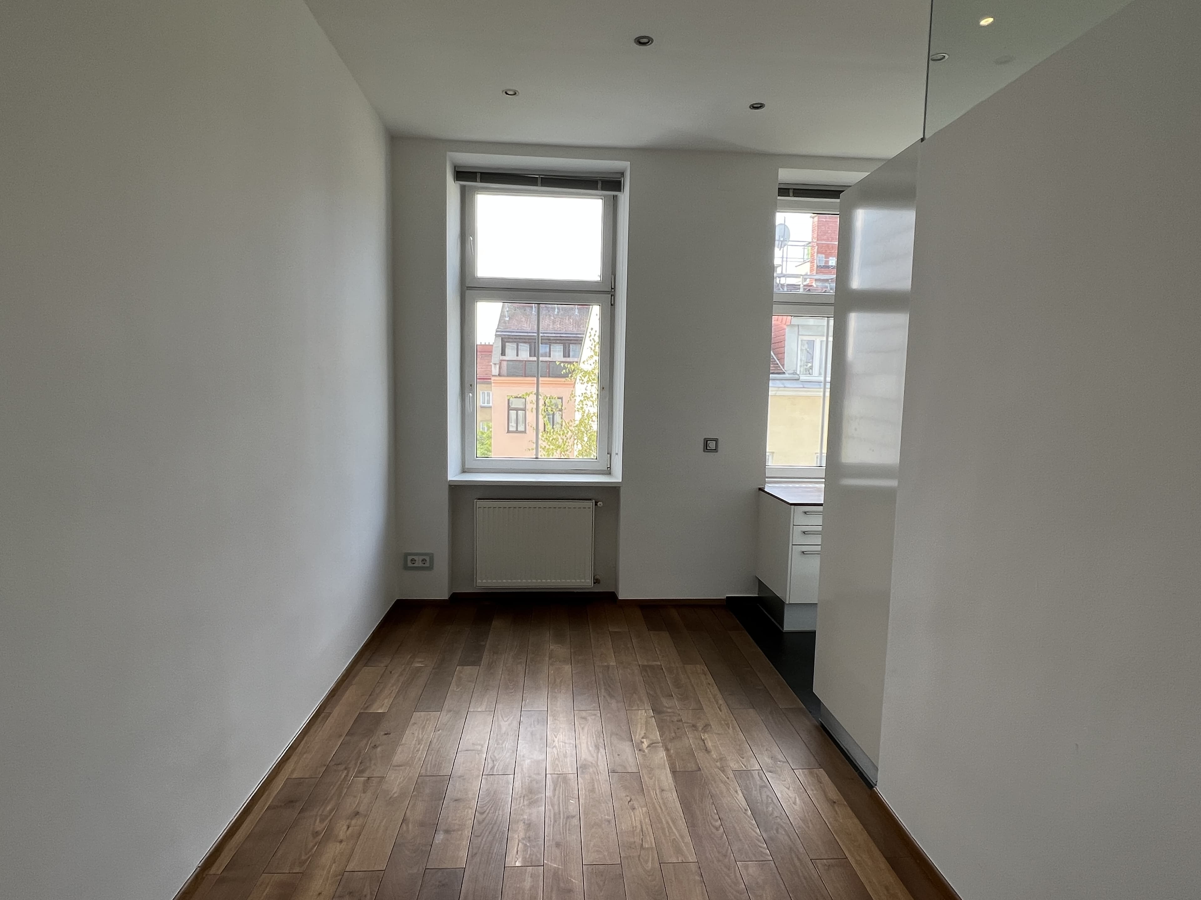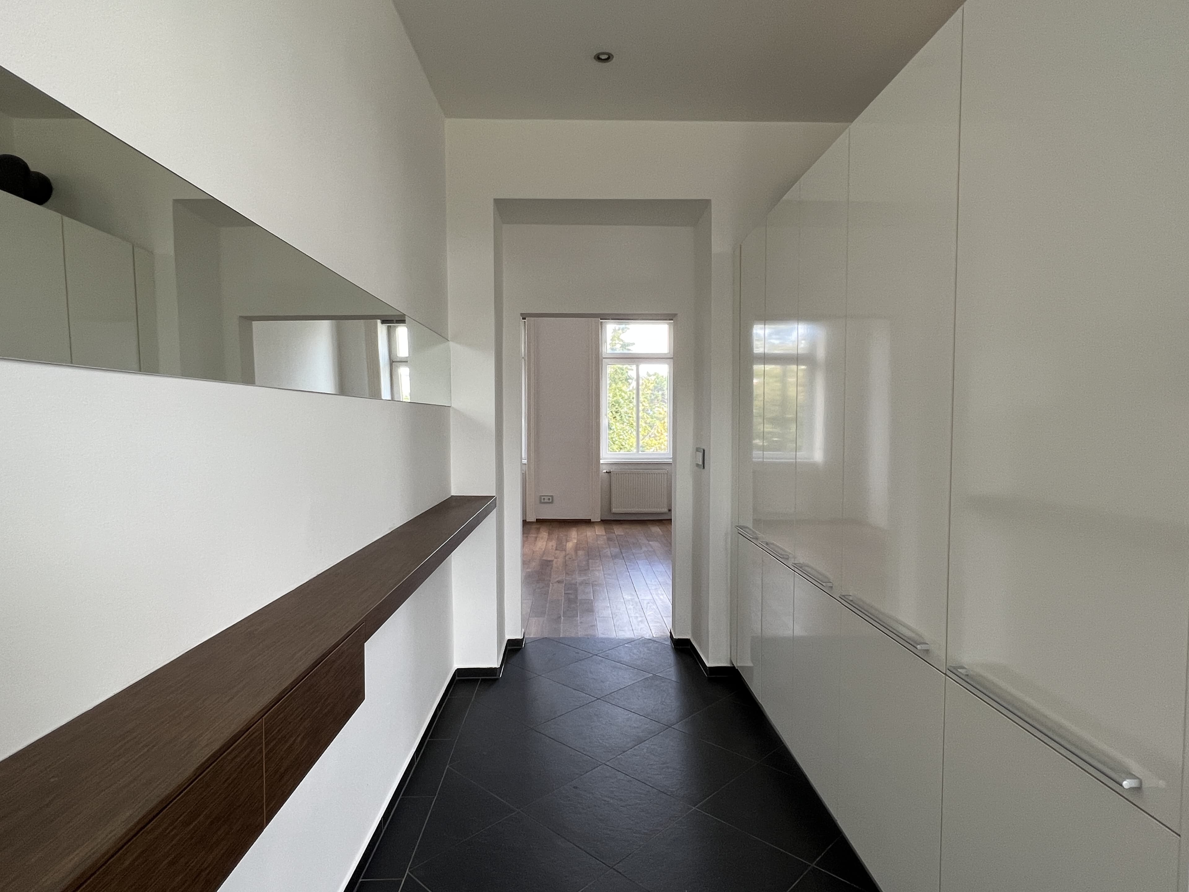 Ausstattung Voll ausgestattete Küche inkl. Markengeräten von Gaggenau (Kühlschrank, Gefrierschrank, Cerankochfeld, Backrohr, Dunstabzug, Geschirrspüler und Waschmaschine); Badezimmer mit geschmackvoller Verfliesung, eingebautem Waschtisch, Badezimmermöbel, Spiegel, Dusche mit Rainshower, Handtuchwärmer; hochwertiger Parkettboden aus Eiche; wärmegedämmte Isolierglasfenster von Actual; separate Toilette; Fernsehanschlüsse in Wohn- und Schlafzimmer; dimmbare Deckenspots in gesamter Wohnung. Ein sehr großes Kellerabteil wird ebenfalls mitvermietet.