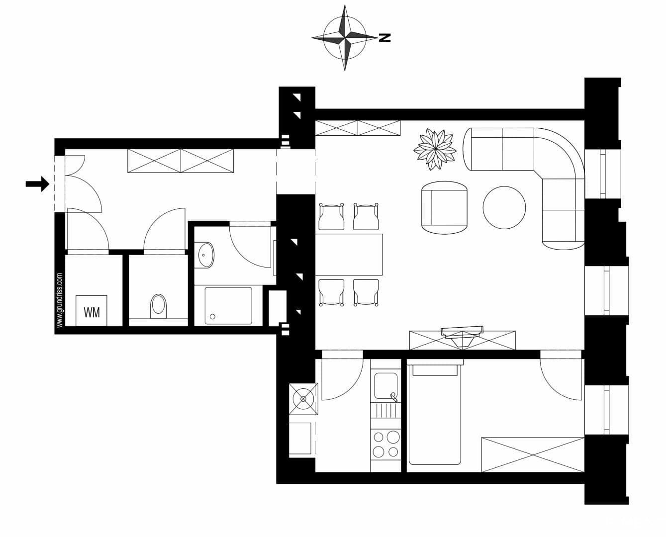 Raumaufteilung // Vorraum // Küche // Wohnzimmer // Schlafzimmer // Badezimmer mit Dusche // Toilette