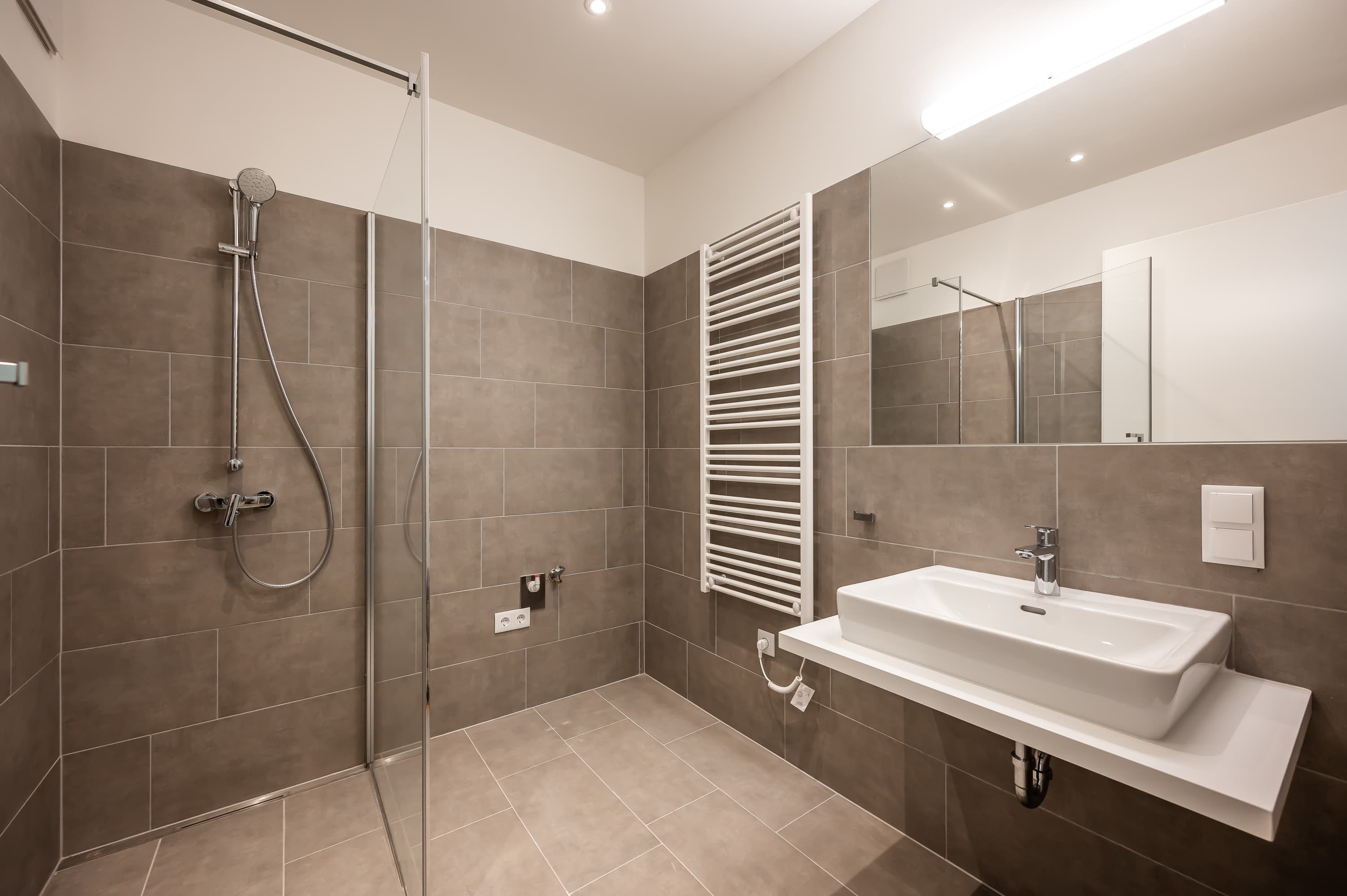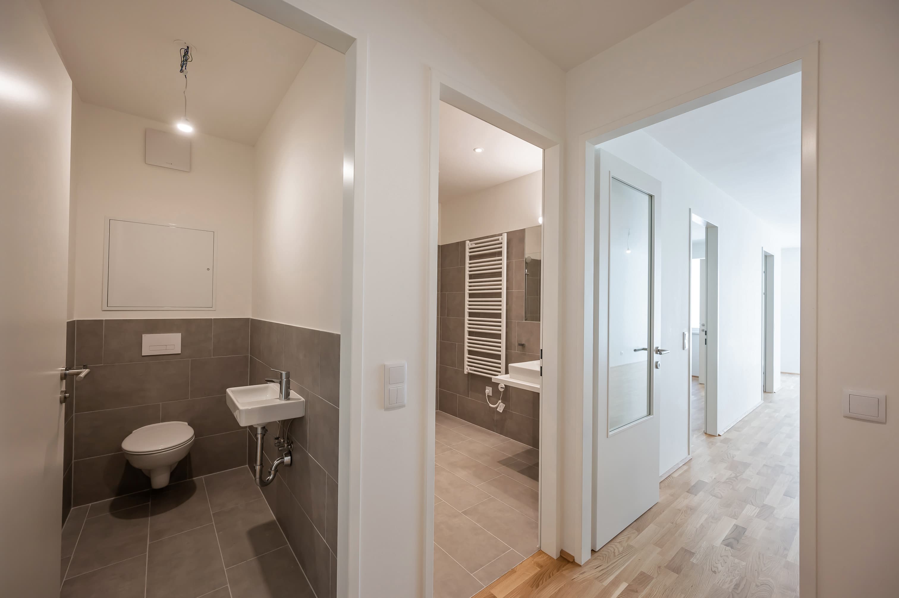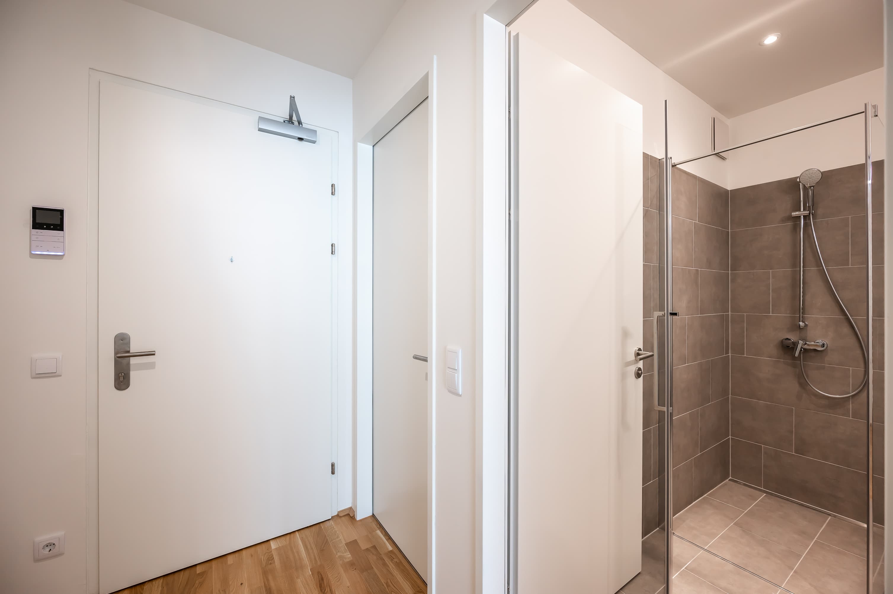 Ausstattung // voll ausgestattete Küche inkl. Einbaugeräte // hochwertiger Parkettboden - Eiche natur // Fußbodenheizung mit Einzelwohnraumregelung // Wohnungen im DG sowie Reihenhäuser verfügen über eine Klimaanlage // Kunststofffenster mit Alu Deckschale/ Terrassentüren mit 3 Scheiben Wärmeschutzverglasung // Beschattung/Sichtschutz an allen Wohnraumfenstern durch außenliegende, elektrisch bedienbare Rollos // geschmackvolle Verfliesung aus hochwertigem Feinsteinzeug sowie Design Armaturen in den Nassräumen // großzügige Dusche oder Badewanne // großflächiger Spiegel, Waschtisch, elektrischer Handtuchwärmer und Waschmaschinenanschluss // Wohnungseingangstüre als Sicherheitstüre (Widerstandsklasse III) // Gegensprechanlage // jede Wohneinheit verfügt über ein eigenes Kellerabteil