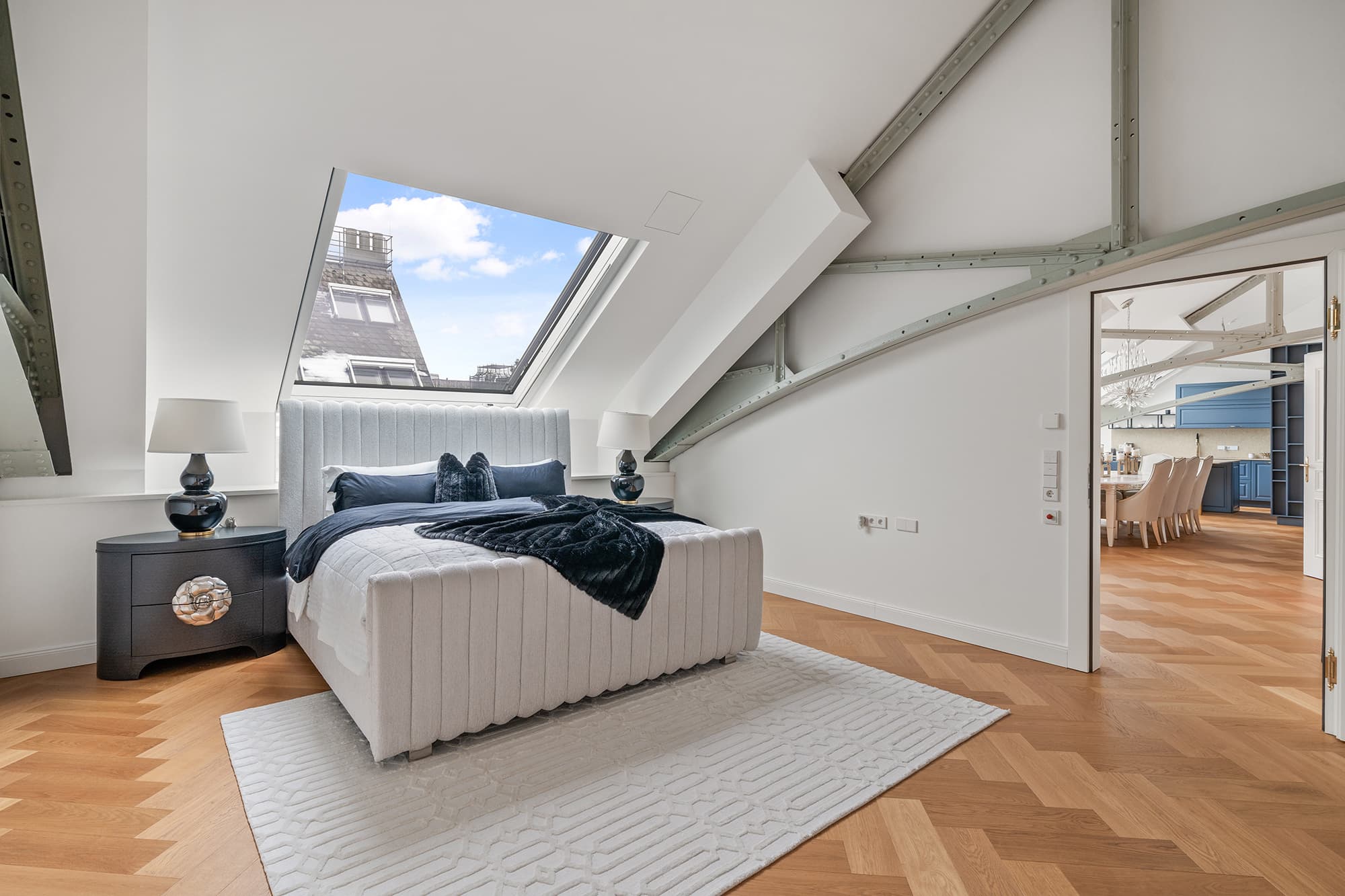 Auf ca. 215 m² Wohnfläche verbindet diese Dachgeschosswohnung Großzügigkeit, Privatsphäre und exklusives Design harmonisch miteinander. Die Wohnung wird hochwertig und geschmackvoll möbliert angeboten und erfüllt höchste Ansprüche an Stil und Komfort.