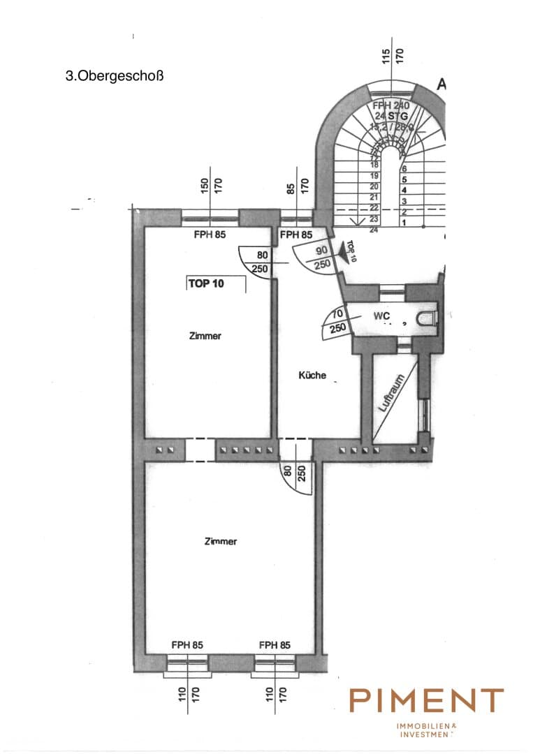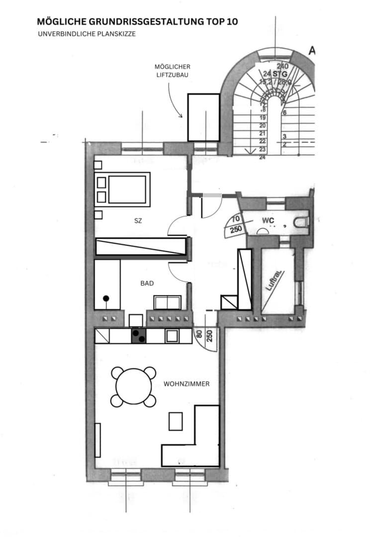 Die 48m2 große Altbauwohnung befindet sich im 3. Stock des Gebäudes und kommt nun gänzlich unsaniert in der Verkauf. Somit stehen dem zukünftigen Eigentümer alle Möglichkeiten offen sich hier mit persönlichen Wünschen und Vorstellungen zu verwirklichen, um so eine ganz persönliche Rückzugsoase, ein eigenes Zuhause zu schaffen. All die Elemente eines klassischen Altbaus warten hier auf Sie, besondere Raumhöhen, salonartige Räume und ein durchgesteckter Grundriss, der strassenseitig als auch hofseitig ausgerichtet ist.