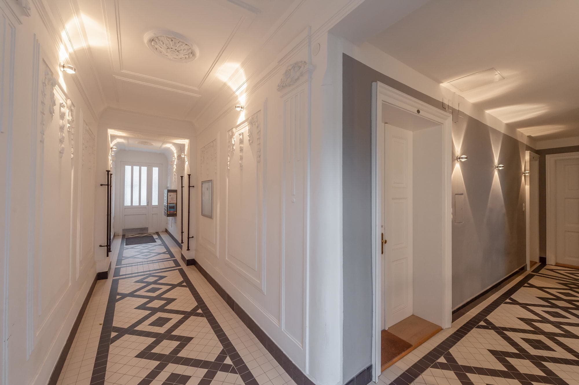 Lage: Die Wohnung befindet sich in einem charmanten Gebäude aus der Jahrhundertwende in der Alsegger Straße im 18. Bezirk. Die Lage ist ausgezeichnet: ruhig und zentral, grün und urban. Parkanlagen, Alleen und Gärten, soweit das Auge reicht. Im Viertel rund um die Alsegger Straße erfreut hübsche Jahrhundertwende-Architektur das Auge. In naher Umgebung befindet sich der Türkenschanzpark mit vielen Denkmälern, Spiel-, Sport- und Relaxmöglichkeiten. Fußläufig sind einige sehr nette Restaurants, Cafés und Bars zu erreichen. In der unmittelbaren Umgebung befinden sich außerdem sämtliche Geschäfte des täglichen Bedarfes (zum Beispiel ein Billa, ein Gourmet Spar, eine Apotheke,...). Die Amadeus International School befindet sich in Gehweite.
