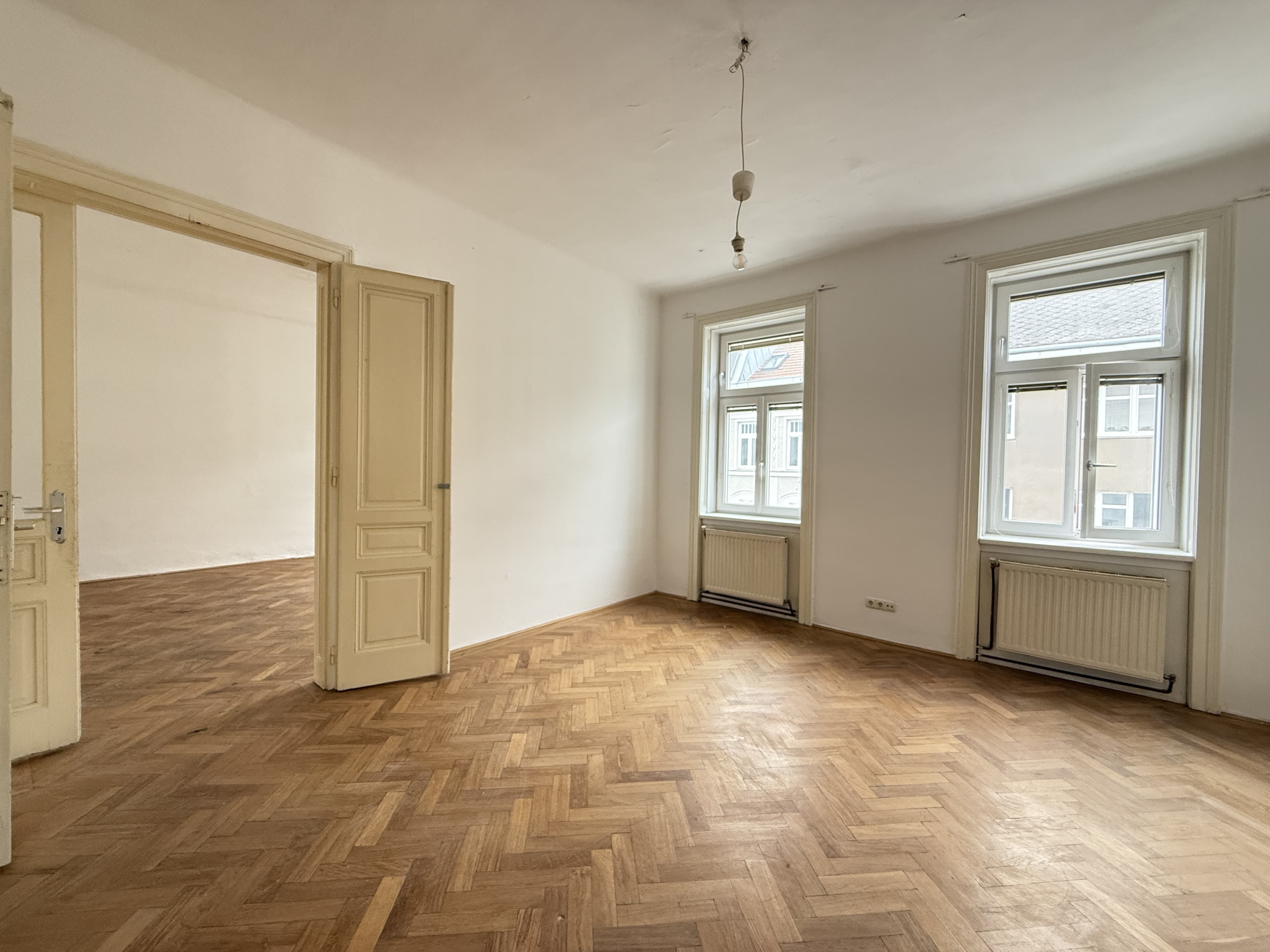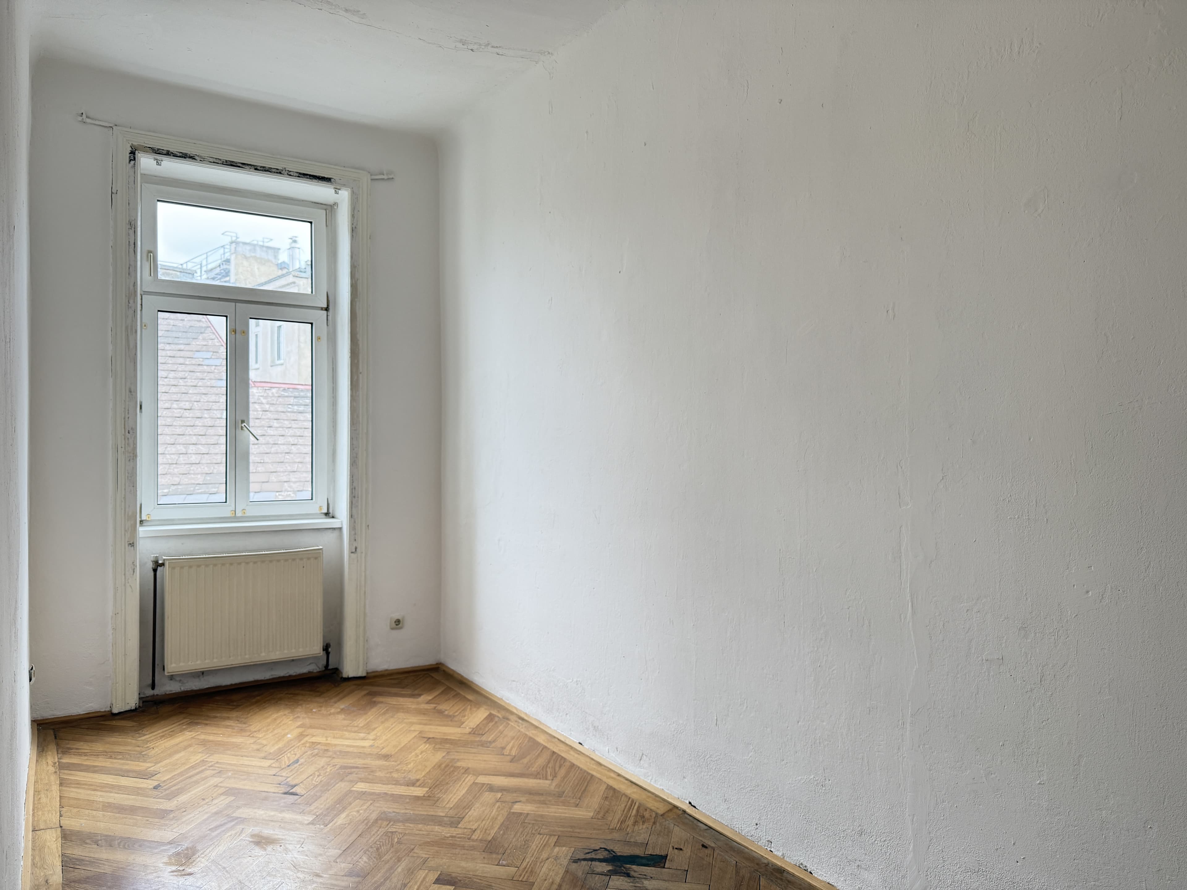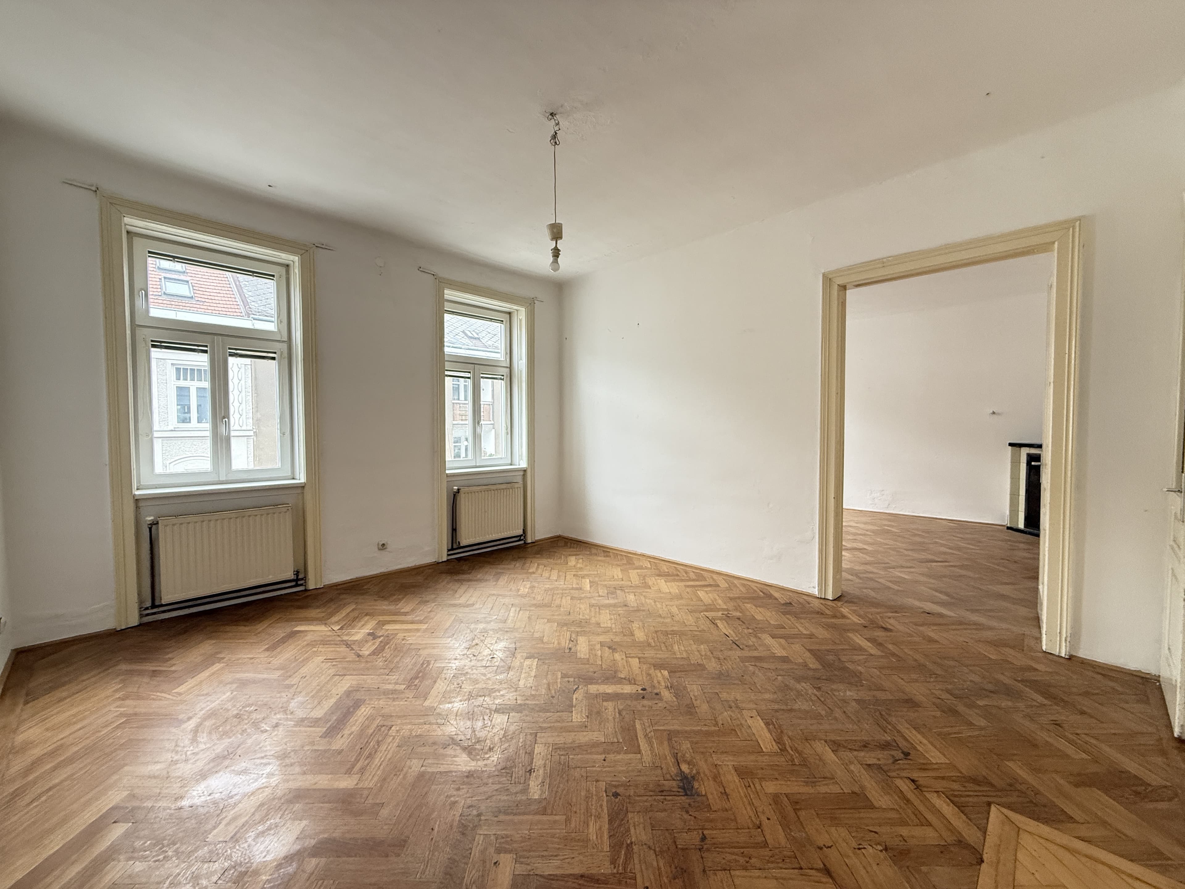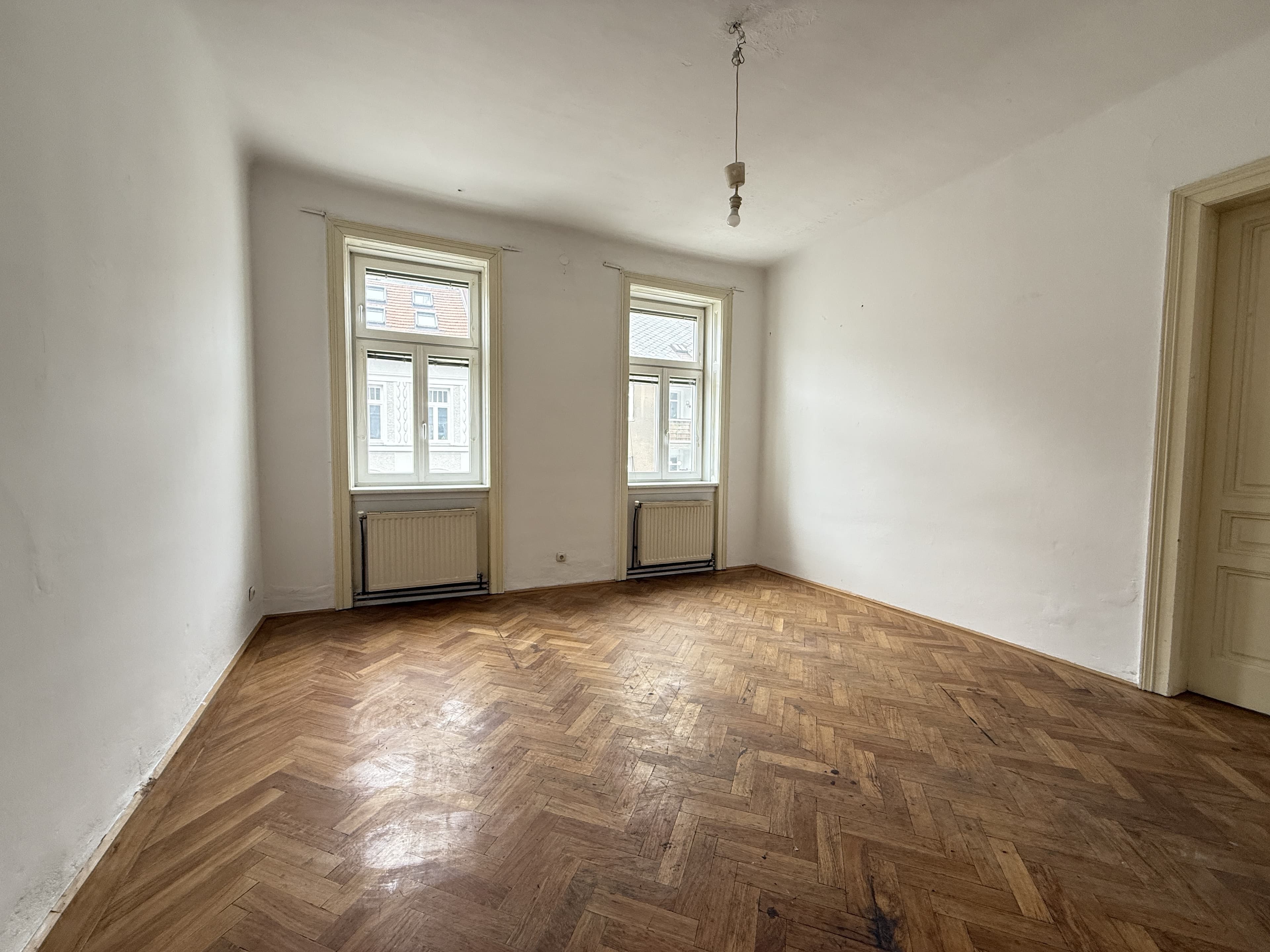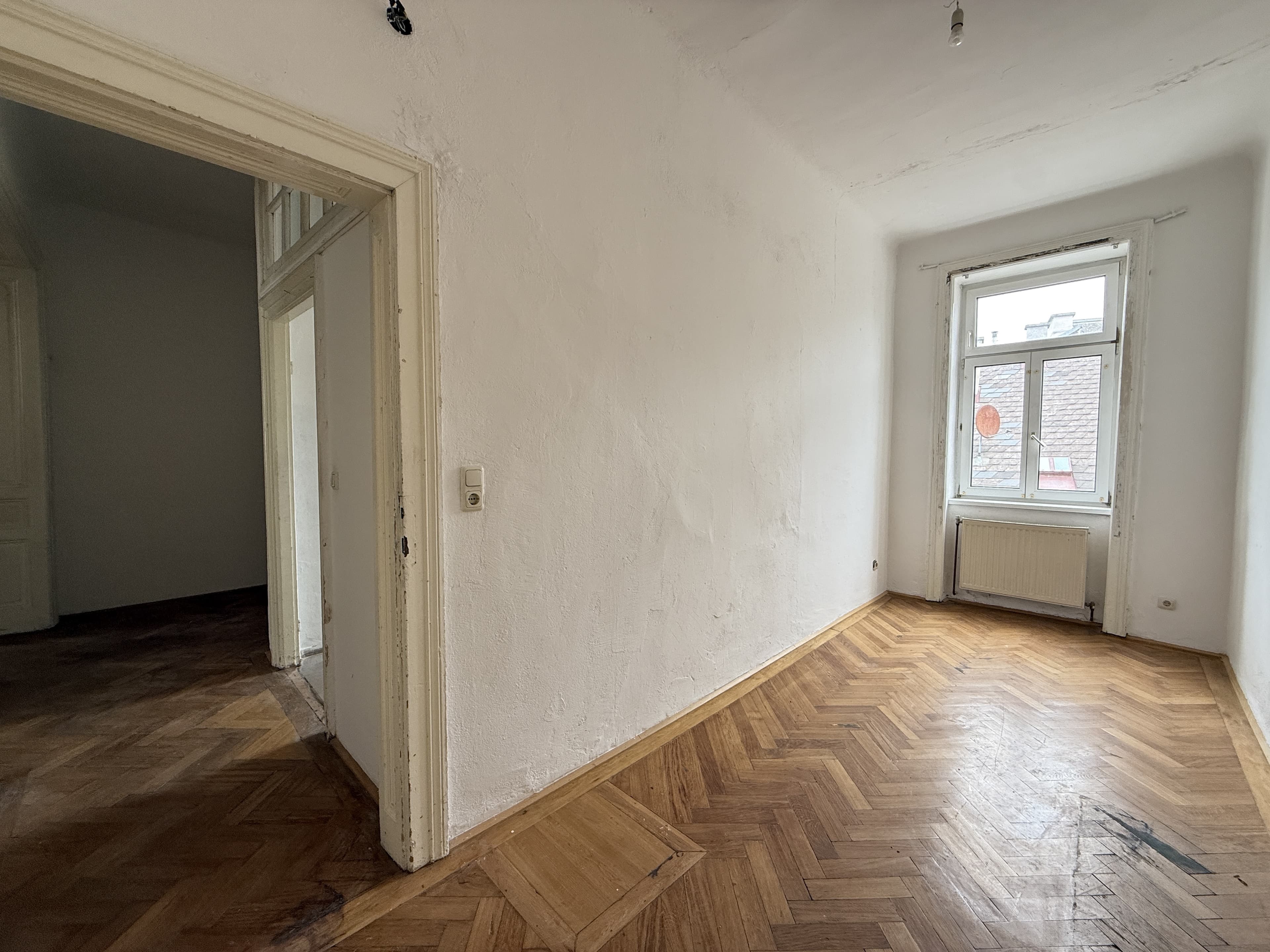 Die 76m2 große klassiche Altbauwohnung befindet sich im 4. Stock des Gebäudes und kommt nun unsaniert in der Verkauf. Somit stehen dem zukünftigen Eigentümer alle Möglichkeiten offen sich hier mit persönlichen Wünschen und Vorstellungen zu verwirklichen, um so eine ganz persönliche Rückzugsoase, ein eigenes Zuhause zu schaffen. All die Elemente eines klassischen Altbaus warten hier auf Sie, besondere Raumhöhen, Flügeltüren, salonartige Räume und ein durchgesteckter Grundriss, der strassenseitige als auch hofseitig ausgerichtet ist.