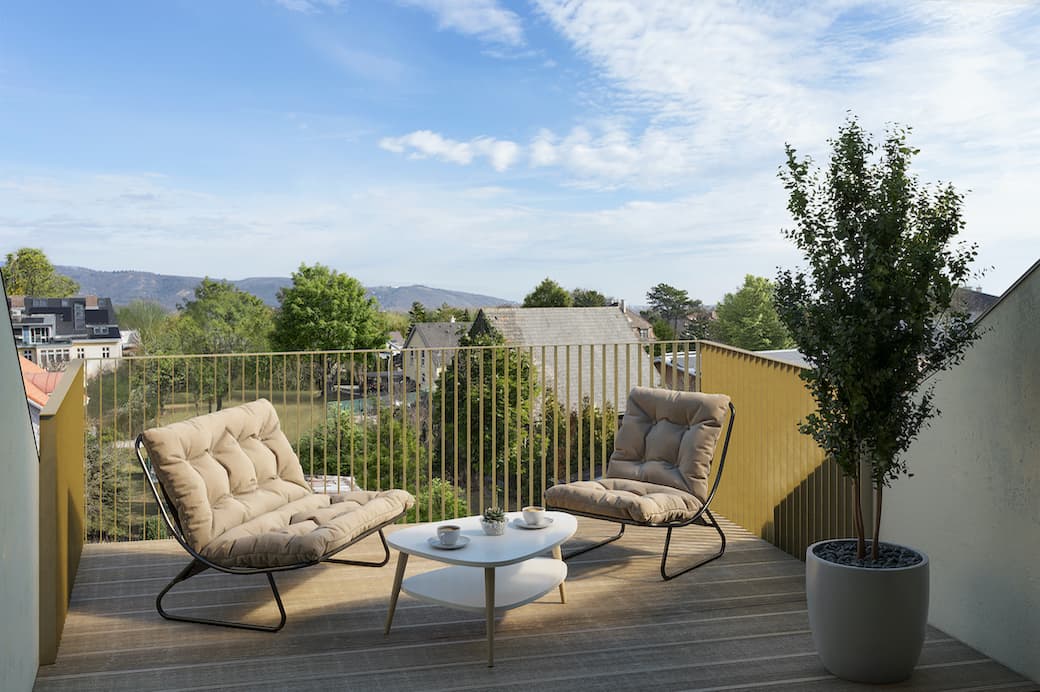 // Eigengarten mit Terrasse, Balkon im 1. OG, Terrasse im 2. OG und eine Dachterrasse mit Rundumblick // Hochwertiger Eichendielenboden // Erstklassige Sanitärausstattung // Tageslichtbäder mit bodenebenen Walk-In Duschen // Heizung und Kühlung durch eigene Luftwärmepumpe // Elektrische Außenbeschattung für individuelle Lichtverhältnisse // Elegantes Feinsteinzeug auf allen Freiflächen // Direkter Zugang zu den hauseigenen Tiefgaragenplätzen